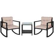 Outsunny 3 Pieces Rattan Garden Rocking Chair Set, Outdoor Rocking Bistro Set w/ 2 Cushioned Armchair and Glass Top Two-tier Coffee Table, Black - Black