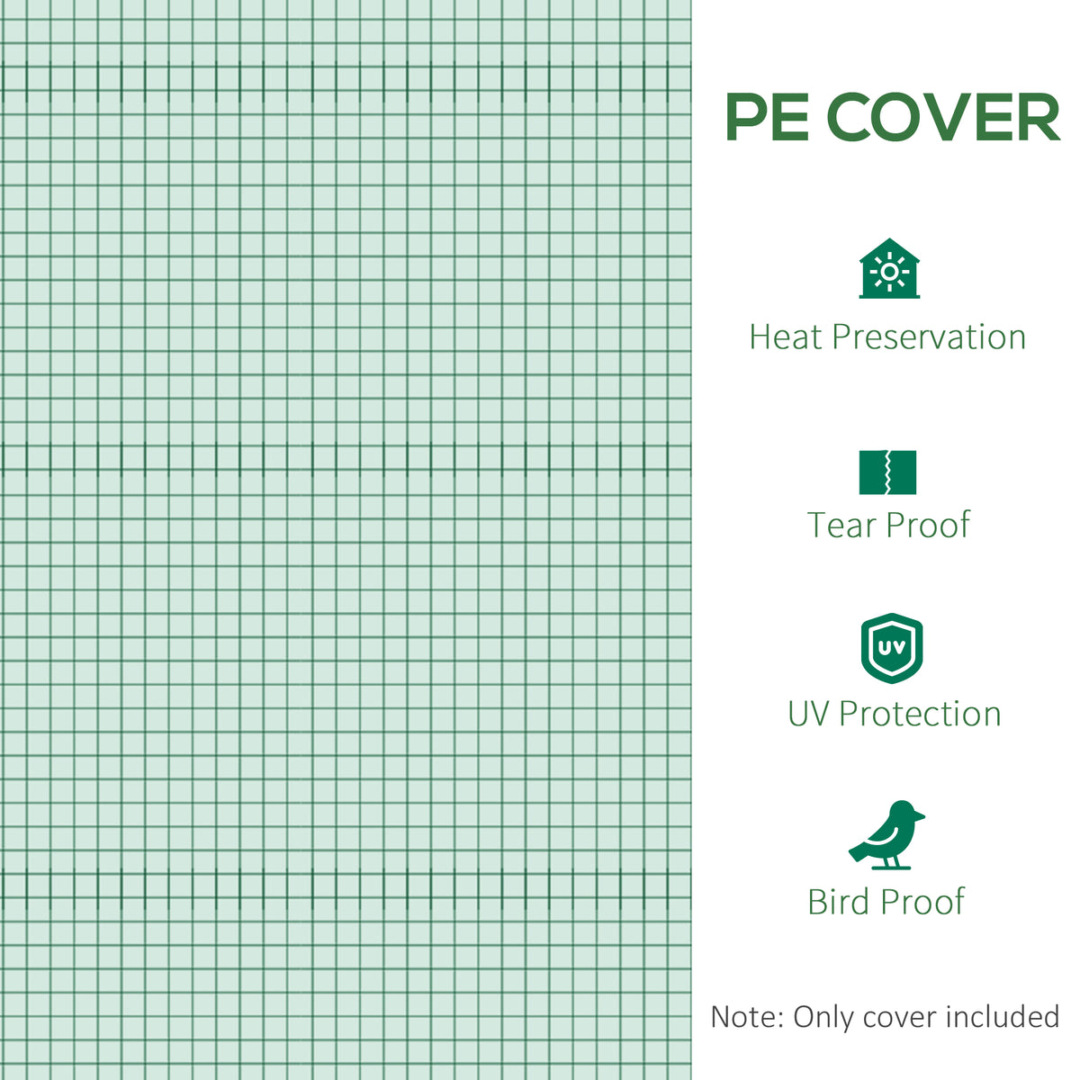 Outsunny 3 x 2 x 2m Greenhouse Replacement Cover ONLY Winter Garden Plant PE Cover for Tunnel Walk-in Greenhouse with Roll-up Windows Door Outdoor, Green - green
