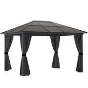 Outsunny 3 x 3.6m Hardtop Gazebo Canopy with Polycarbonate Roof, Aluminium Frame, Permanent Pavilion Garden Gazebo with Netting and Curtains for Patio, Deck, Dark Grey - Black