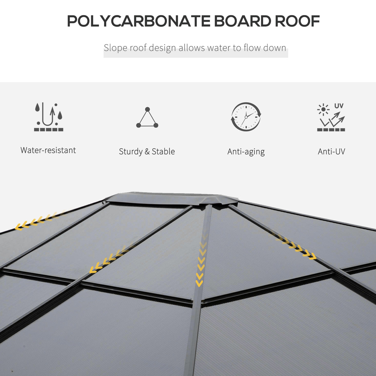 Outsunny 3 x 3.6m Hardtop Gazebo Canopy with Polycarbonate Roof, Permanent Pavilion Garden Gazebo with Curtains for Patio, Deck, Grey - Grey