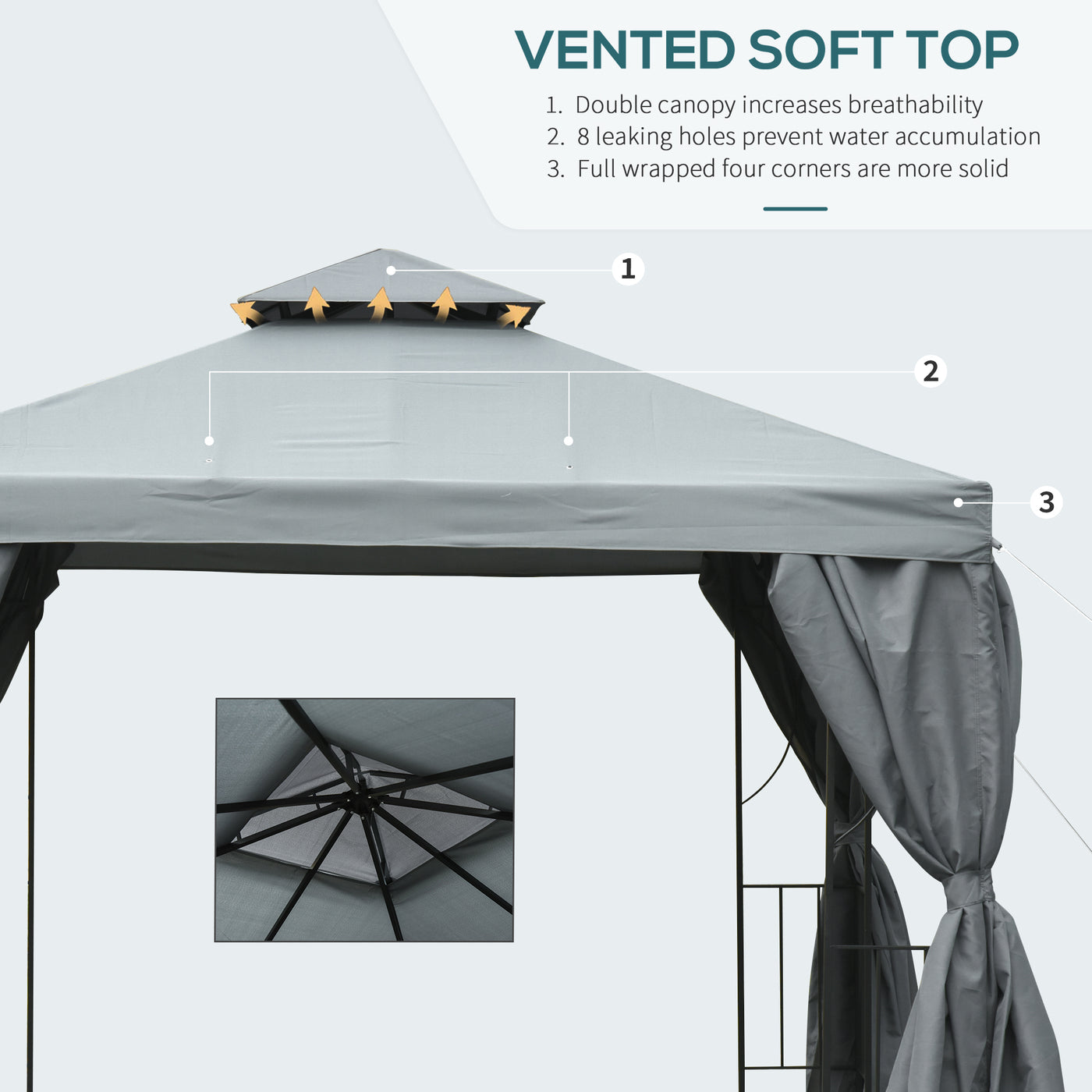 Outsunny 3 x 3 m Garden Gazebo Double Roof Marquee Patio Wedding Party Tent Canopy Shelter with Sidewalls, (Dark Grey) - Grey