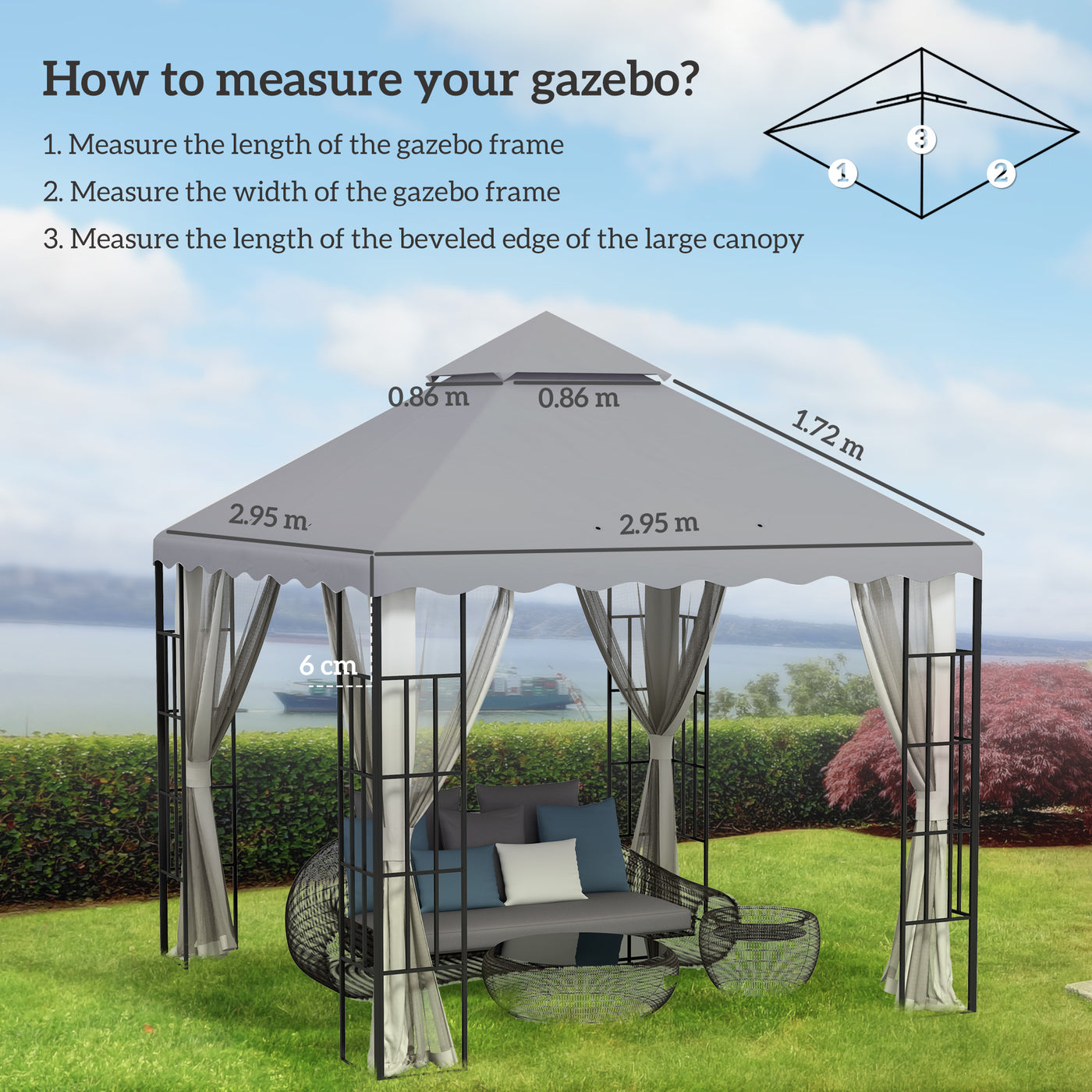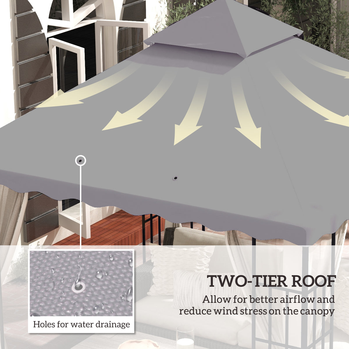 Outsunny 3 x 3 m Gazebo Canopy Replacement Covers, 2 - Tier Gazebo Roof Replacement TOP COVER ONLY, Light Grey - Light Grey