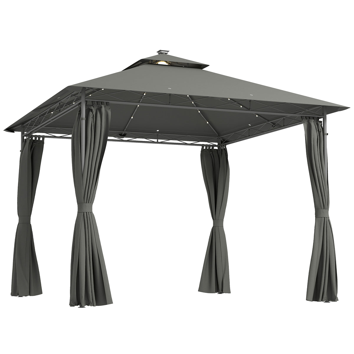 Outsunny 3 x 3 m Solar LED Metal Gazebo - Dark Grey - Dark Grey