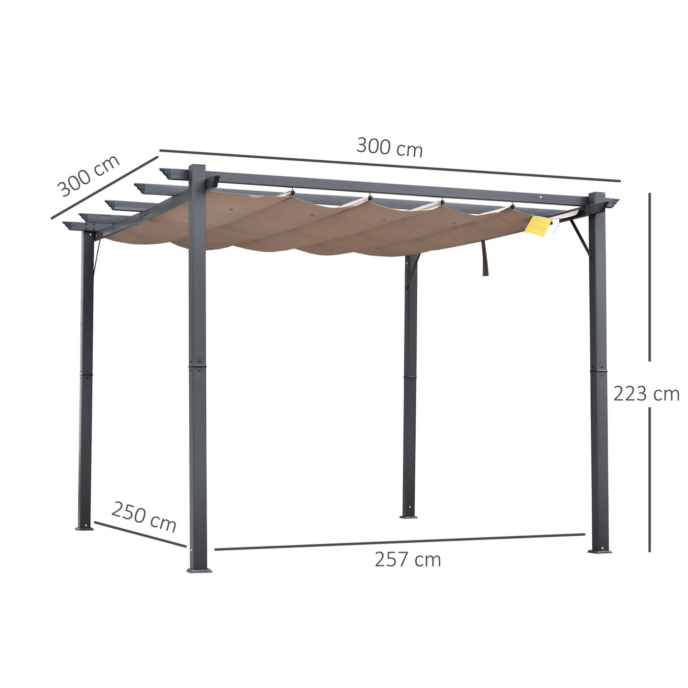 Outsunny 3 x 3(m) Aluminium Pergola Canopy Gazebo Awning Outdoor Garden Sun Shade Shelter Marquee Party BBQ, Brown - Brown