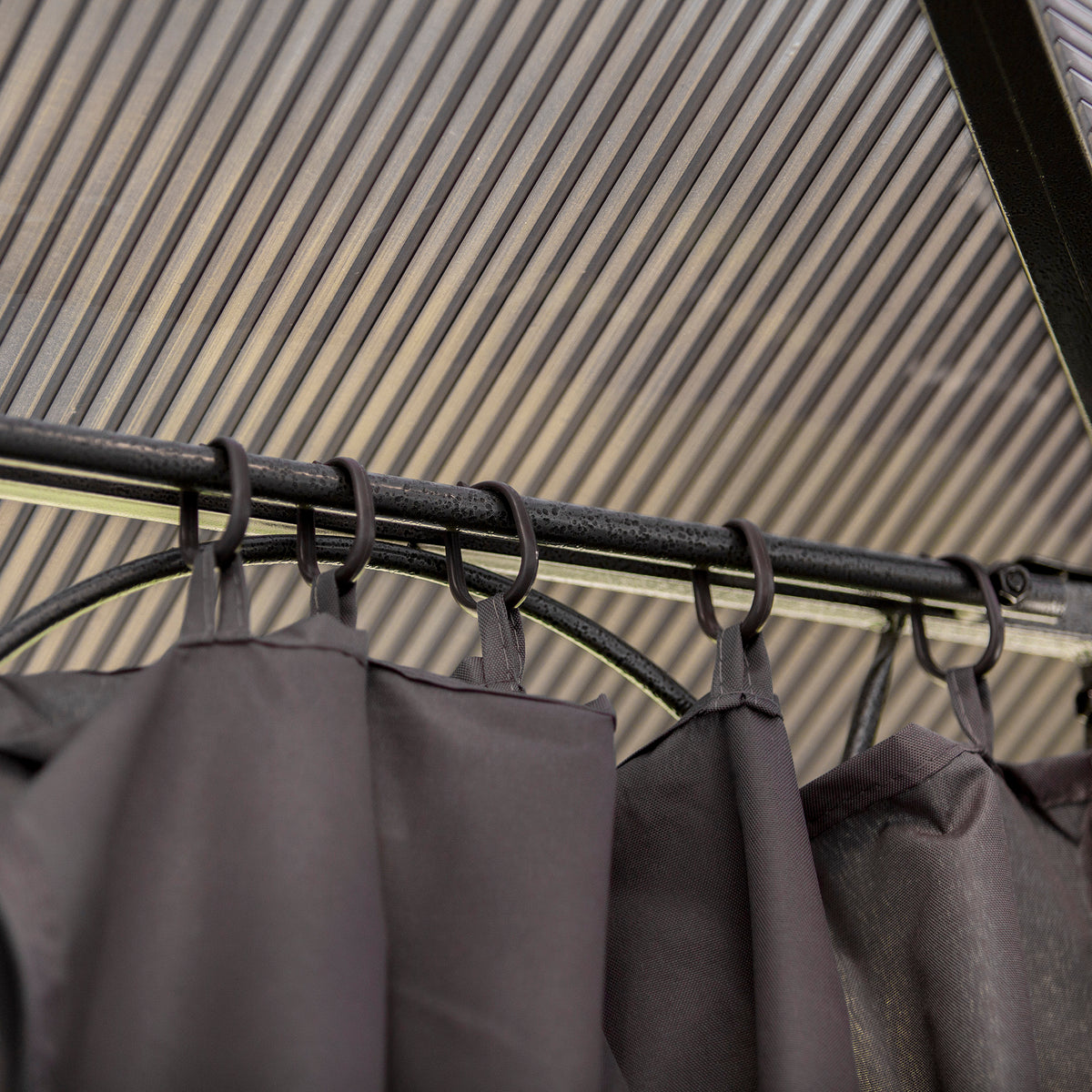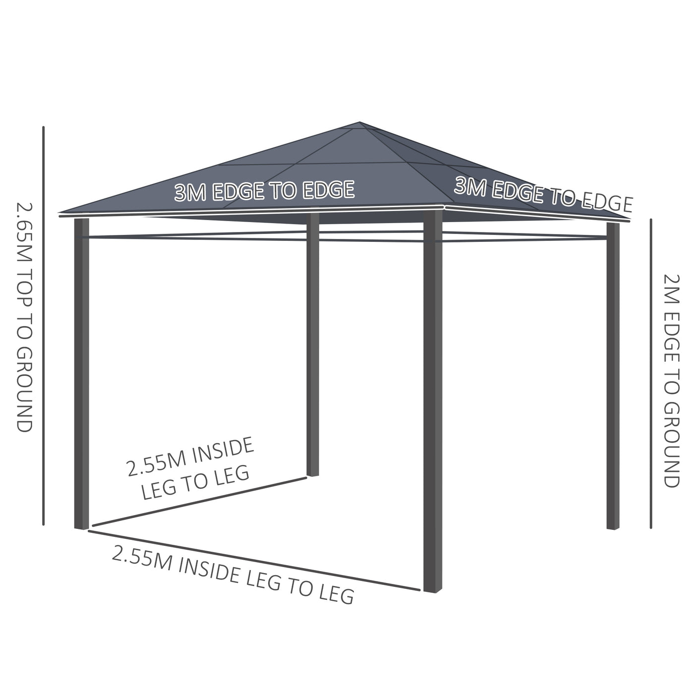 Outsunny 3 x 3(m) Hardtop Gazebo Canopy with Polycarbonate Roof, Permanent Pavilion Garden Gazebo with Curtains for Patio, Deck, Grey - Grey