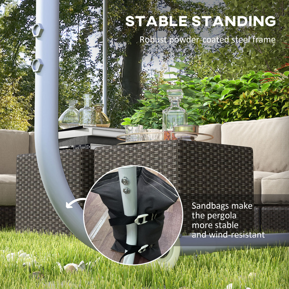 Outsunny 3 x 3(m) Mobile Pergola Kit, Portable Garden Gazebo with Wheels, Sandbags, Steel Frame, UV-Resistant - Dark Grey
