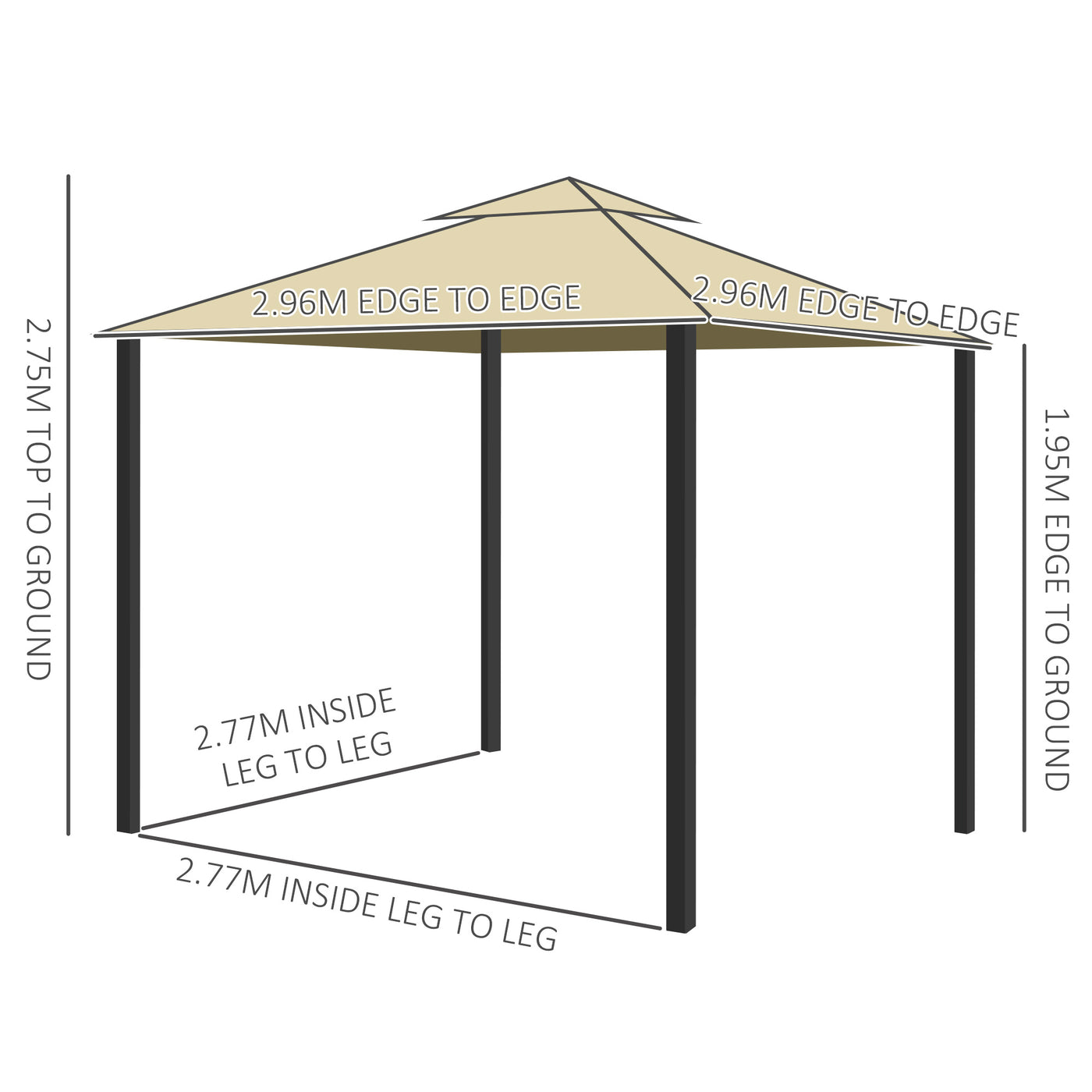Outsunny 3 x 3(m) Patio Gazebo Canopy Garden Pavilion Tent Shelter with 2 Tier Water Repellent Roof, Mosquito Netting and Curtains, Aluminium Frame, Beige - Beige