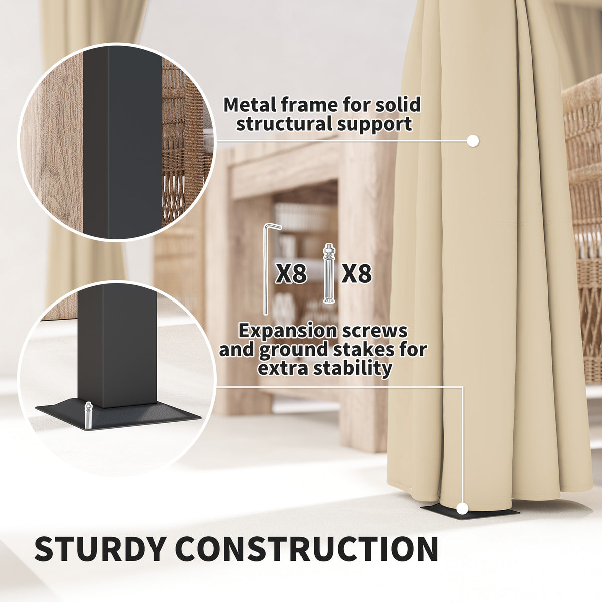Outsunny 3 x 3m Retractable Roof Pergola, with Curtains - Khaki - Khaki