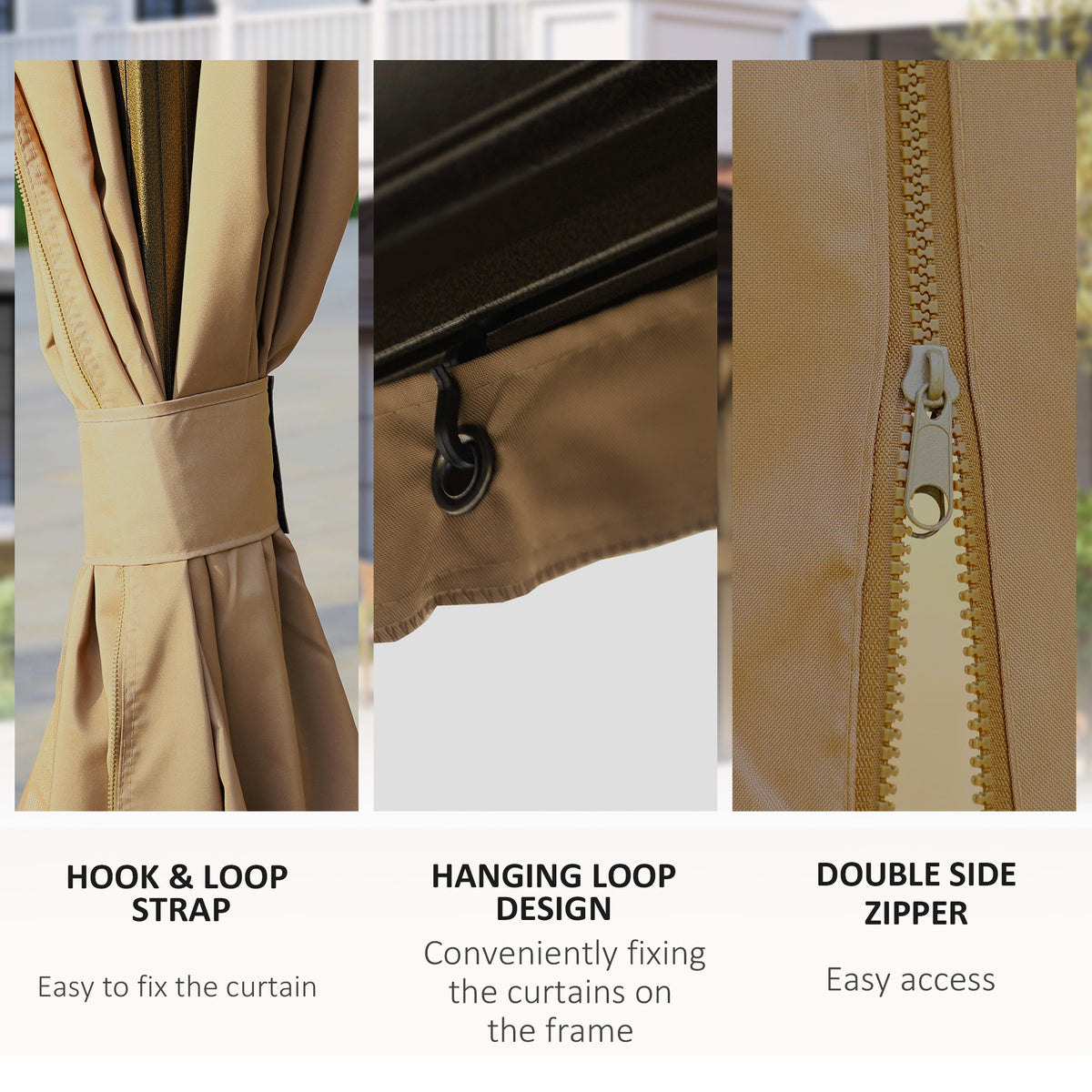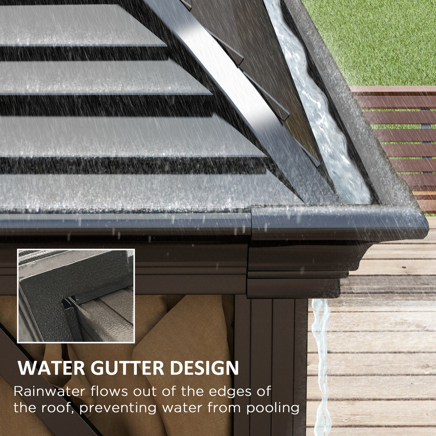 Outsunny 3 x 4m Hardtop Gazebo Canopy with Metal Roof, Aluminium Gazebo Permanent Pavilion with Netting and Curtains, Brown - Brown