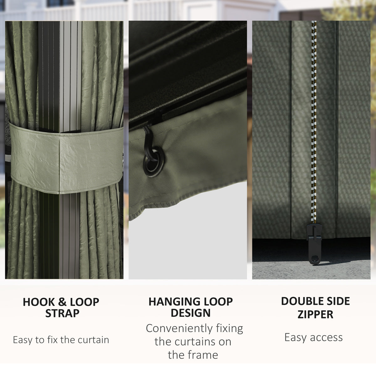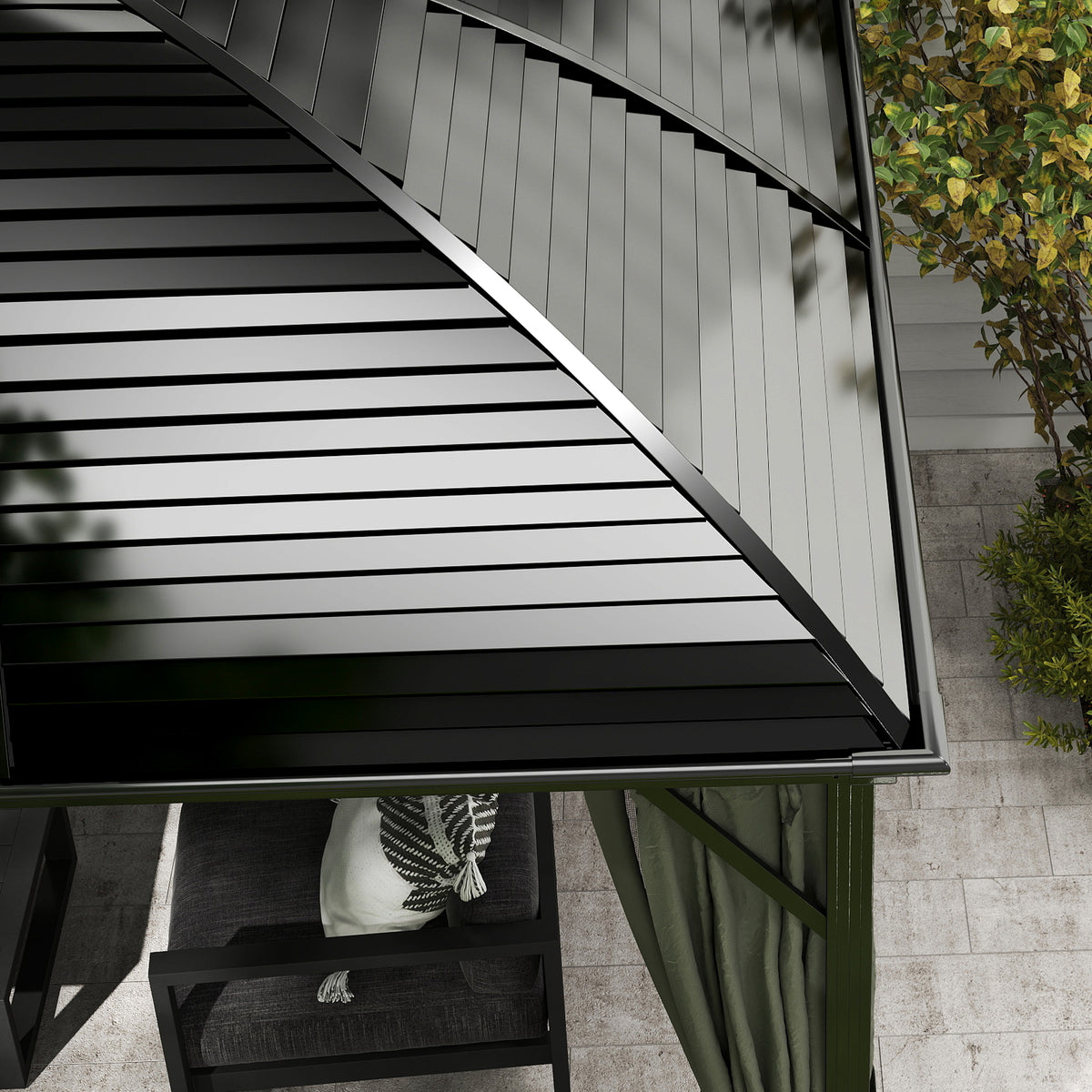 Outsunny 3 x 4m Hardtop Gazebo Canopy with Metal Roof, Aluminium Gazebo Permanent Pavilion with Netting and Curtains, Dark Grey - Dark Grey