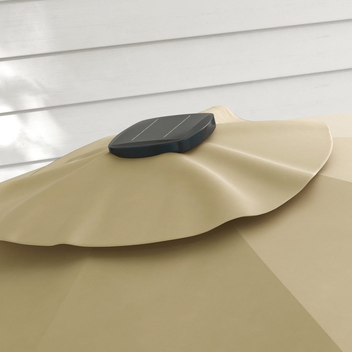 Outsunny 3(m) Adjustable Cantilever Parasol with Base, Solar LED Lights, Khaki - Khaki