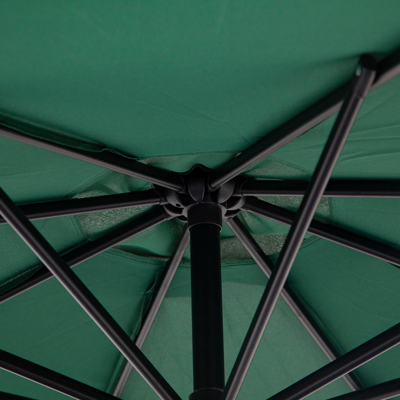 Outsunny 3(m) Banana Parasol Hanging Cantilever Umbrella with Crank Handle, 8 Ribs and Cross Base for Outdoor, Sun Shade, Dark Green - green