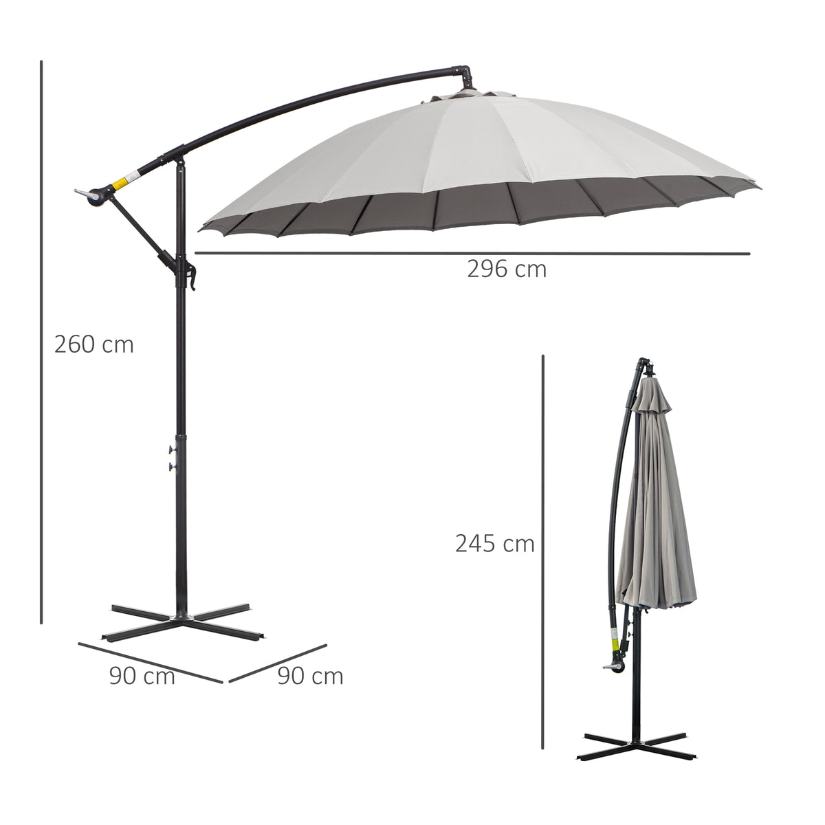 Outsunny 3(m) Cantilever Umbrella 18 Ribs & Vents Adjustable Angle for Patio Light Grey - Grey