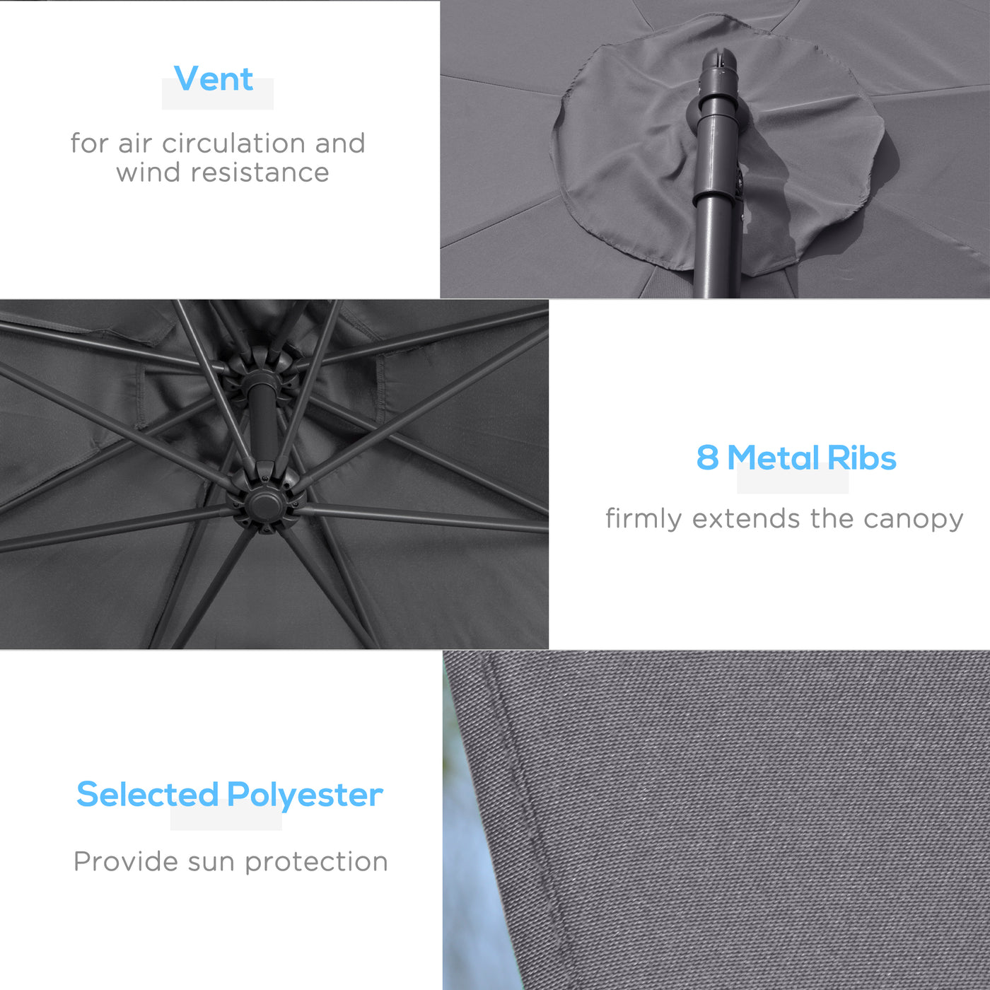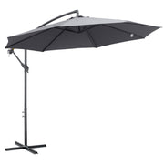 Outsunny 3(m) Garden Parasol Sun Shade Patio Banana Hanging Umbrella Cantilever with Crank Handle and Cross Base Grey - Grey