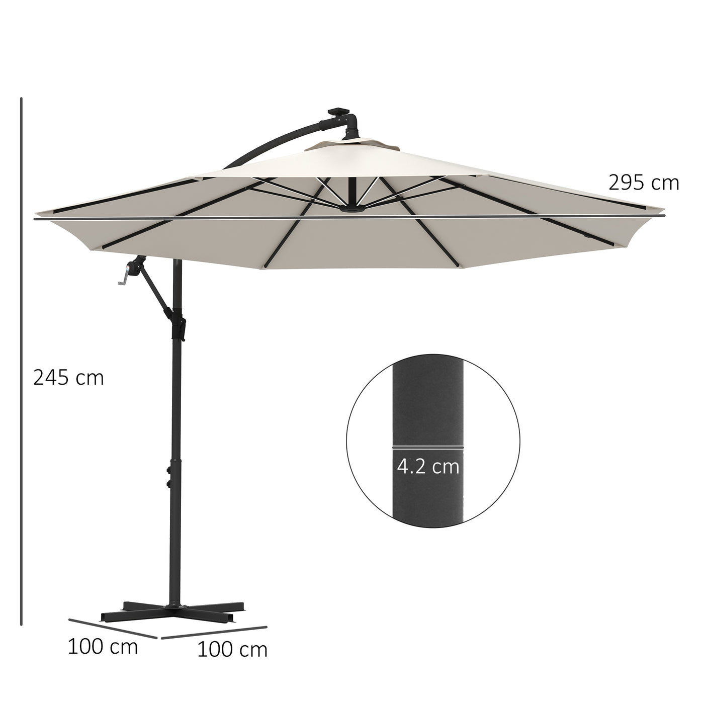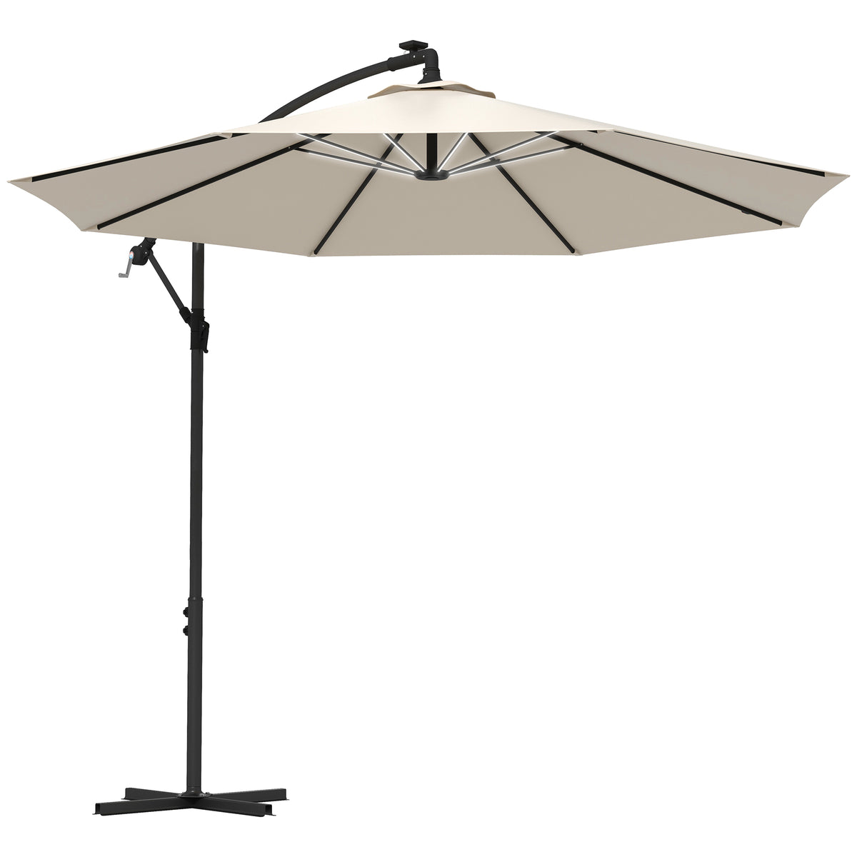 Outsunny 3m Solar LED Light Offset Cantilever Parasol - Beige - Beige