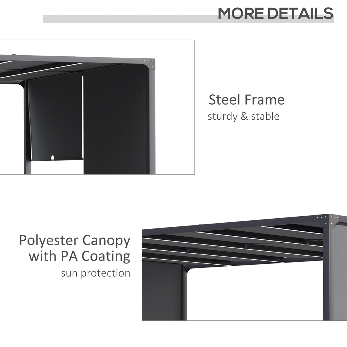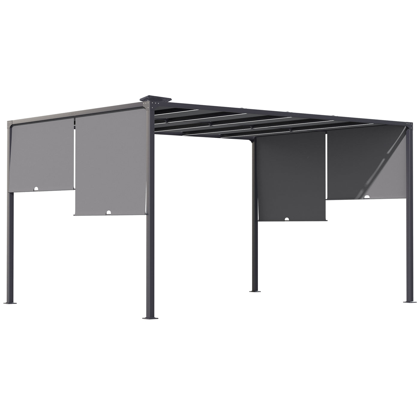 Outsunny 3(m) x 4m Metal Pergola with LED Lights, Outdoor Garden Pergola with Sliding Roof, Solar Powered, for BBQ, Lawn, Dark Grey - Dark Grey