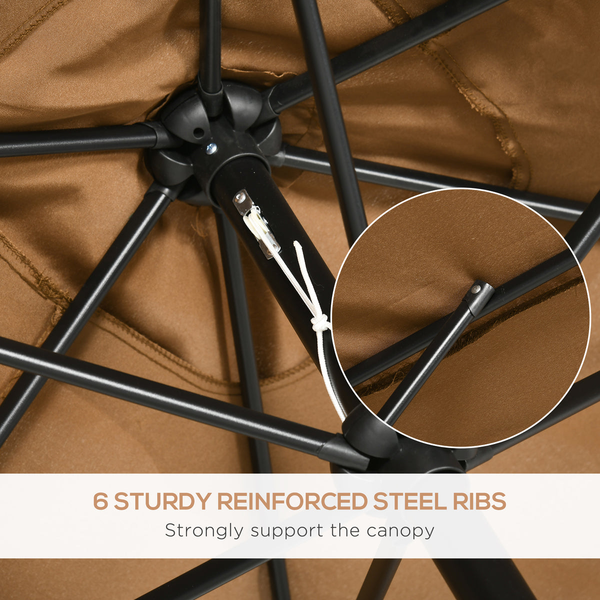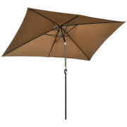 Outsunny 3x2m Garden Parasol Umbrella Outdoor Sun Shade Canopy with Tilt and Crank, Aluminium Frame Rectangular, Brown - Brown