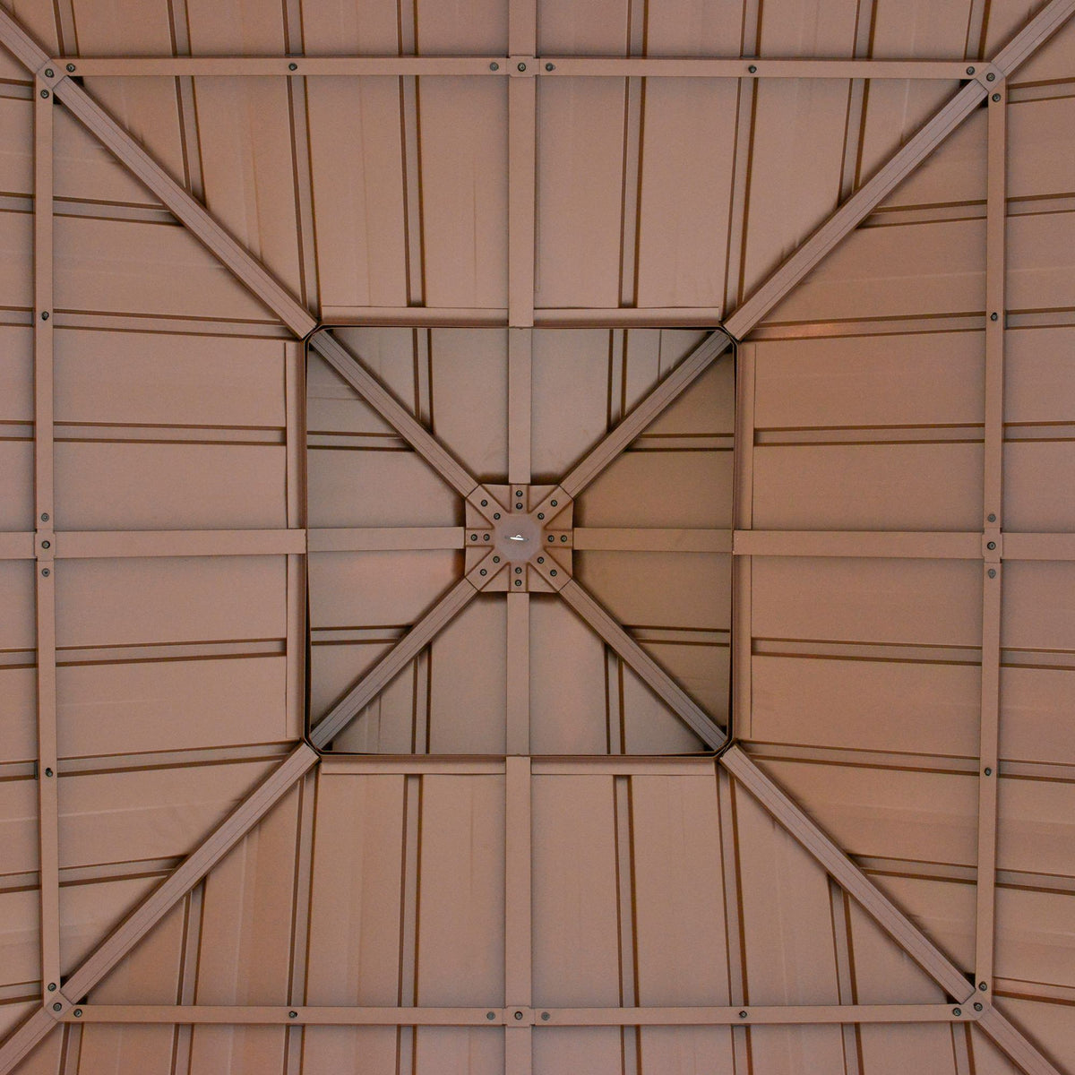 Outsunny 3x(3)M Outdoor Hardtop Gazebo Canopy with 2-Tier Roof and Solid Wood Frame, Outdoor Patio Shelter for Patio, Garden, Brown - Brown