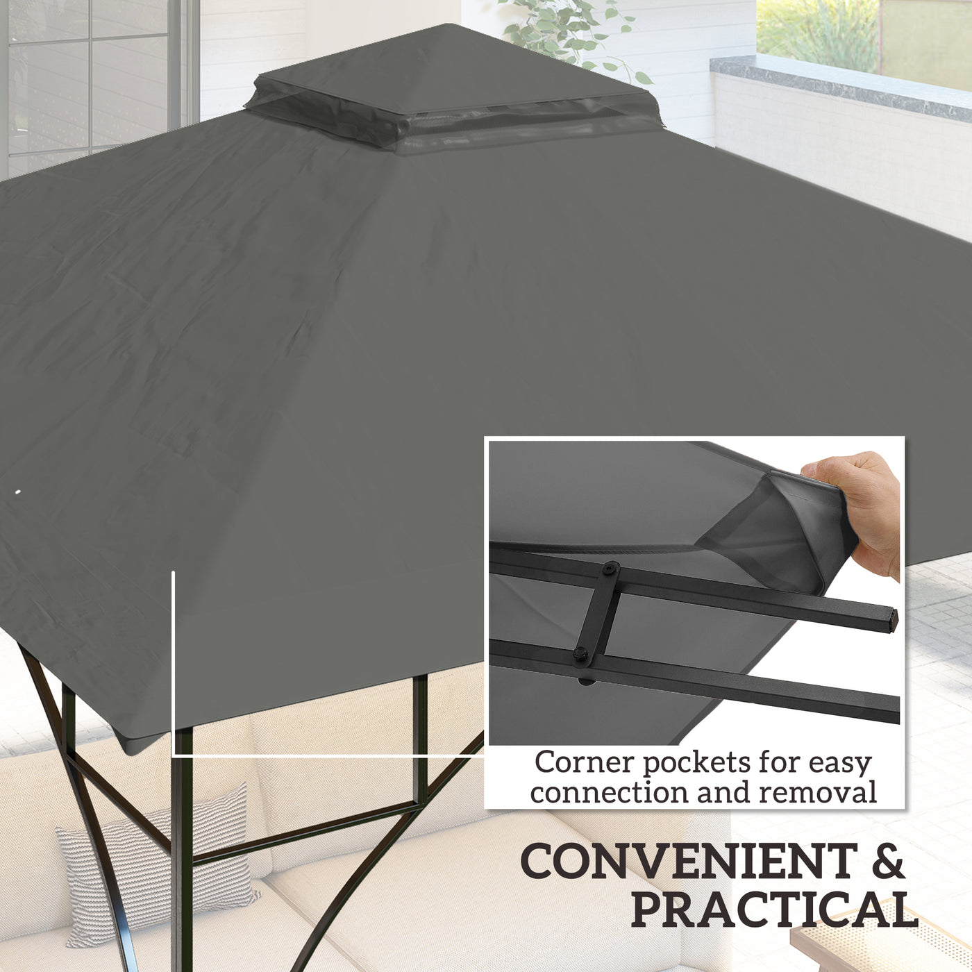 Outsunny 3x3(m) Replacement Gazebo Canopy, Double Tier Roof Top for Garden, Patio, Outdoor, Grey (TOP ONLY) - Grey
