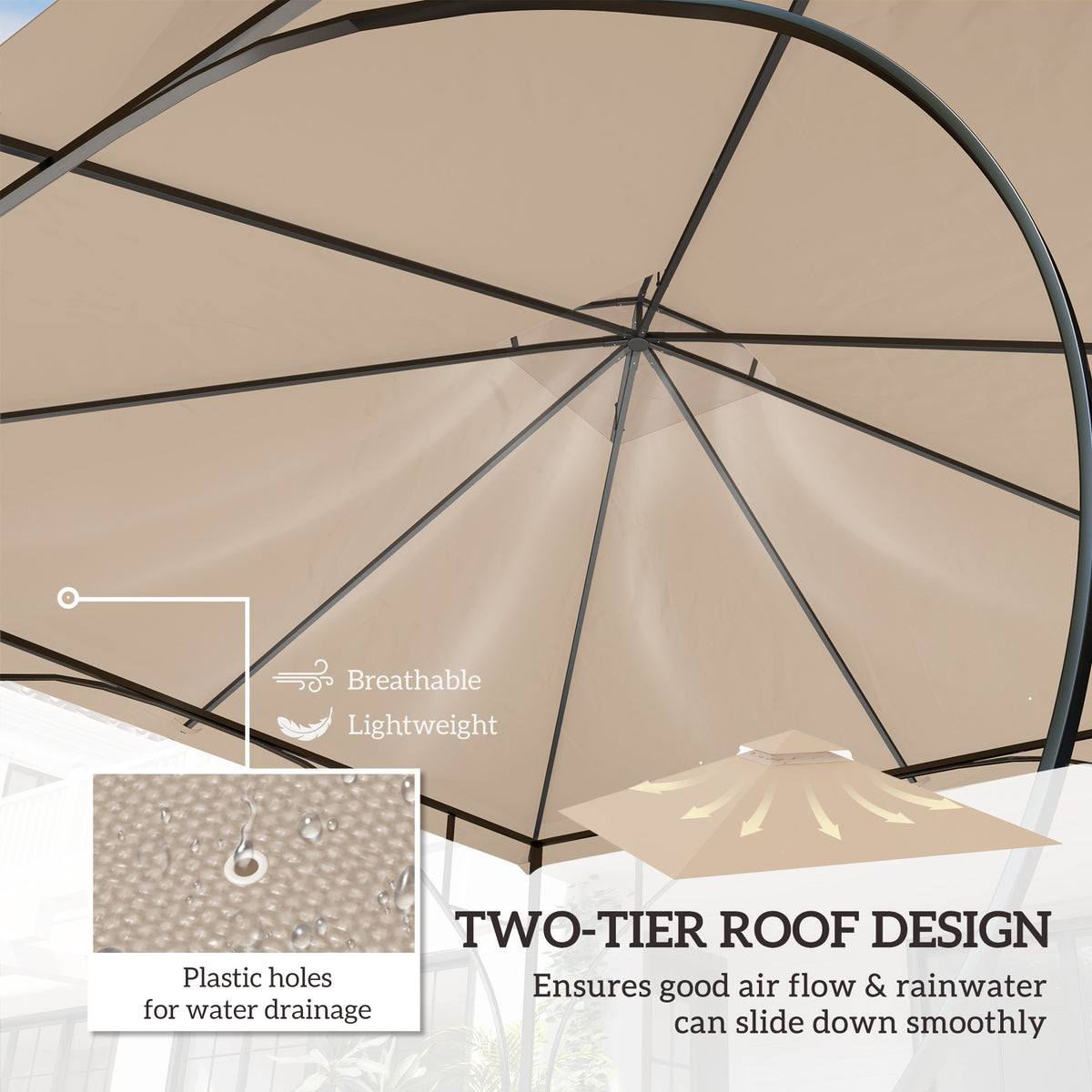 Outsunny 3x3(m) Replacement Gazebo Canopy, Double Tier Roof Top for Garden, Patio, Outdoor, Khaki (TOP ONLY) - Khaki