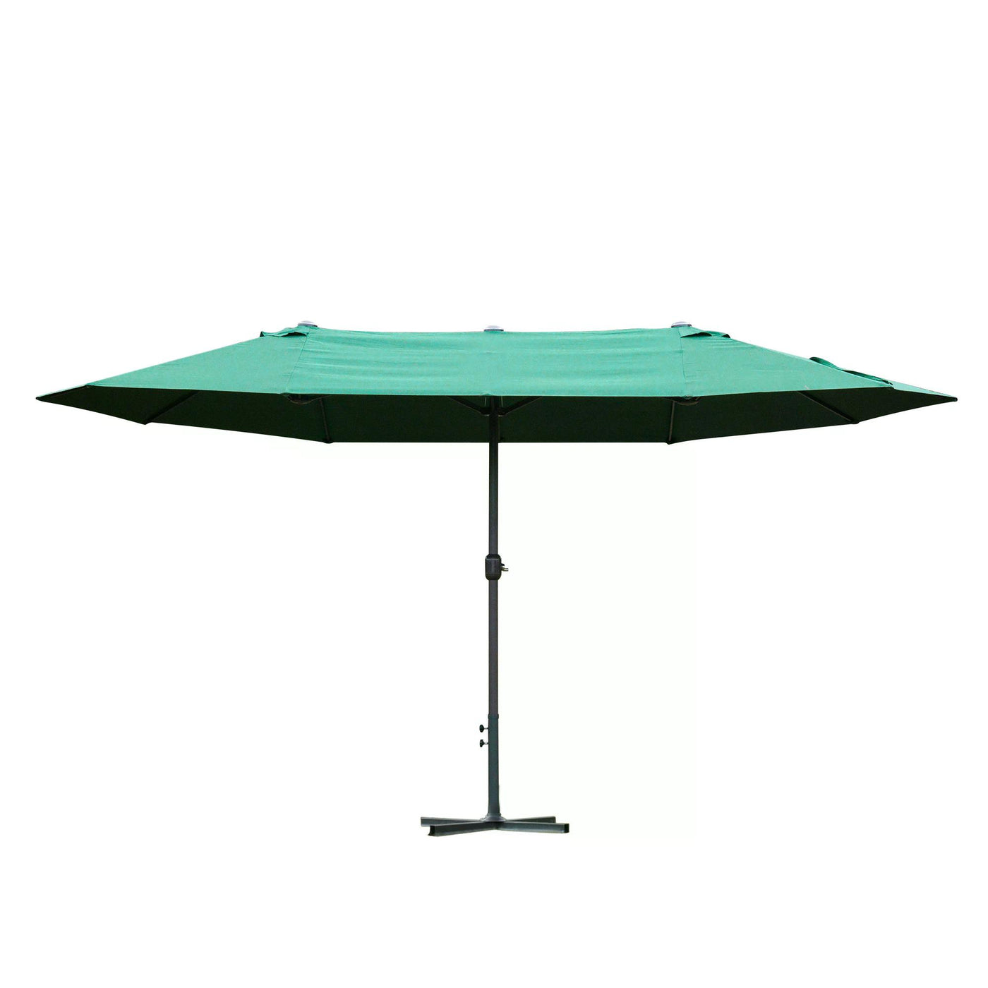 Outsunny 4.6M Sun Umbrella Canopy Double-sided Crank Sun Shade w/ Cross Base Dark Green - Dark Green