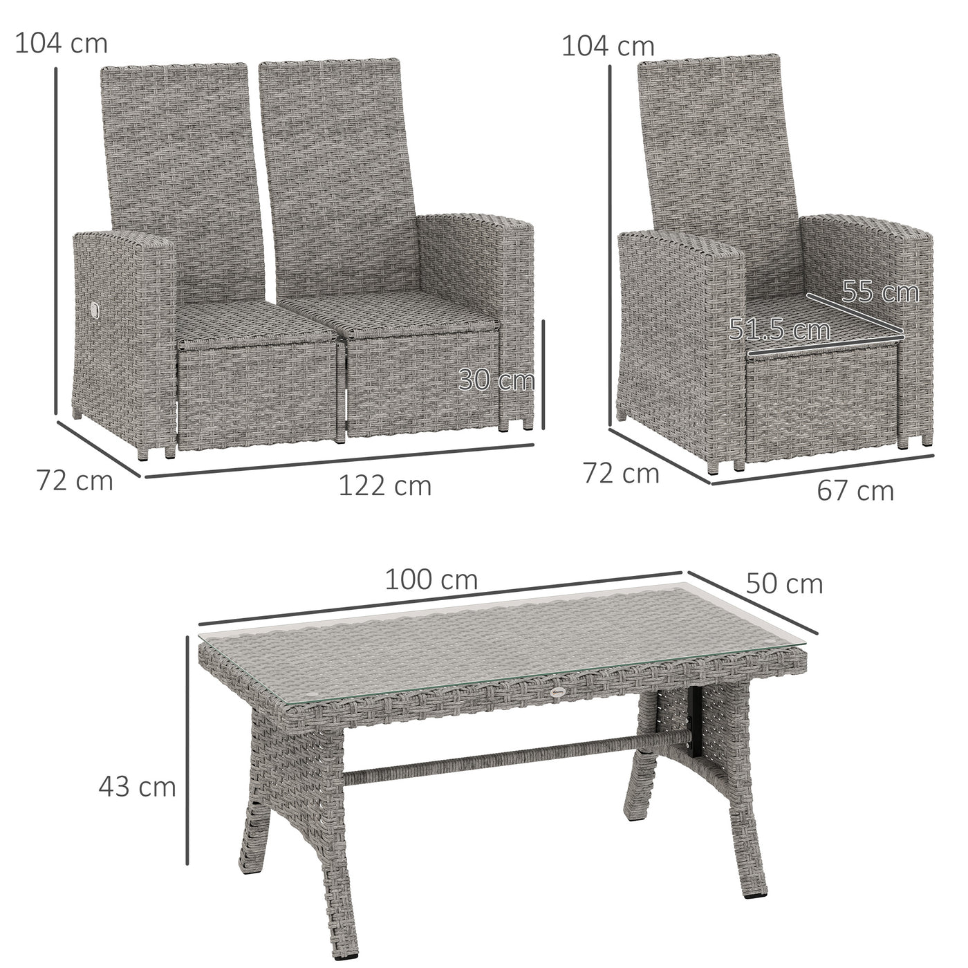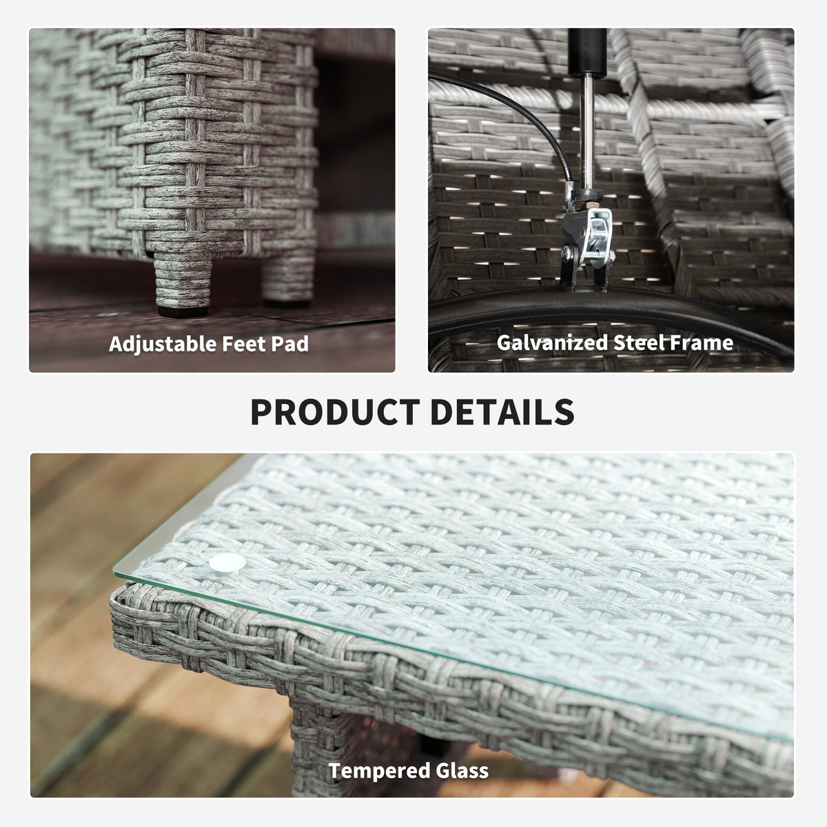 Outsunny 4 Piece Rattan Garden Furniture Set Outdoor Sofa Sectional Set with Glass Top Table for Poolside, Navy Blue - Navy blue
