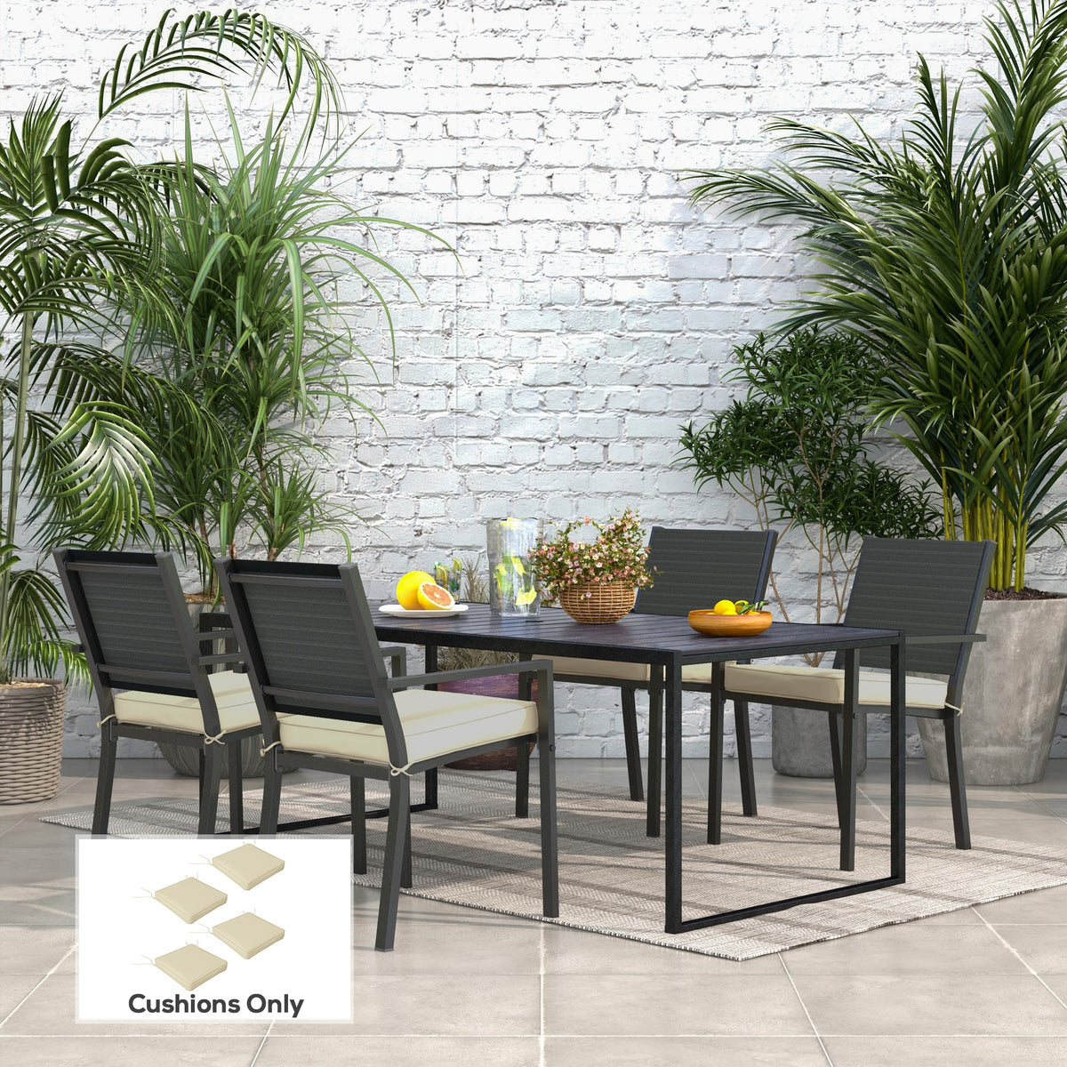 Outsunny 4-Piece Seat Cushions Pillow Replacement, Patio Chair Cushions Set with Ties for Indoor Outdoor, Beige - Beige