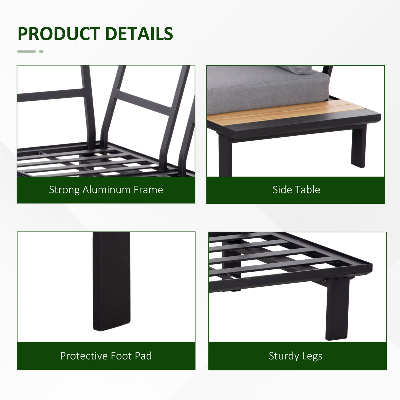 Outsunny 4 Pieces Aluminium Garden Furniture Set L Shape Sofa Set with Tables, Cushions for Indoor, Garden, Patio, Dark Grey - Dark Grey