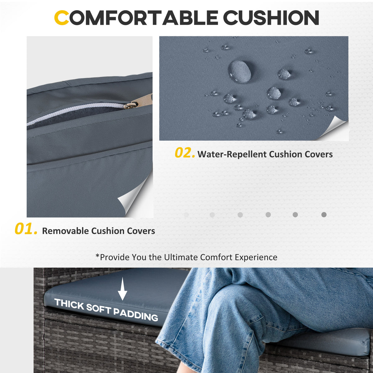 Outsunny 4 Pieces PE Rattan Garden Sofa Set with Cushions, Outdoor Patio Wicker Weave Conservatory Furniture Set with a Loveseat, 2 Armchairs and a Glass Top Coffee Table, Grey - Grey