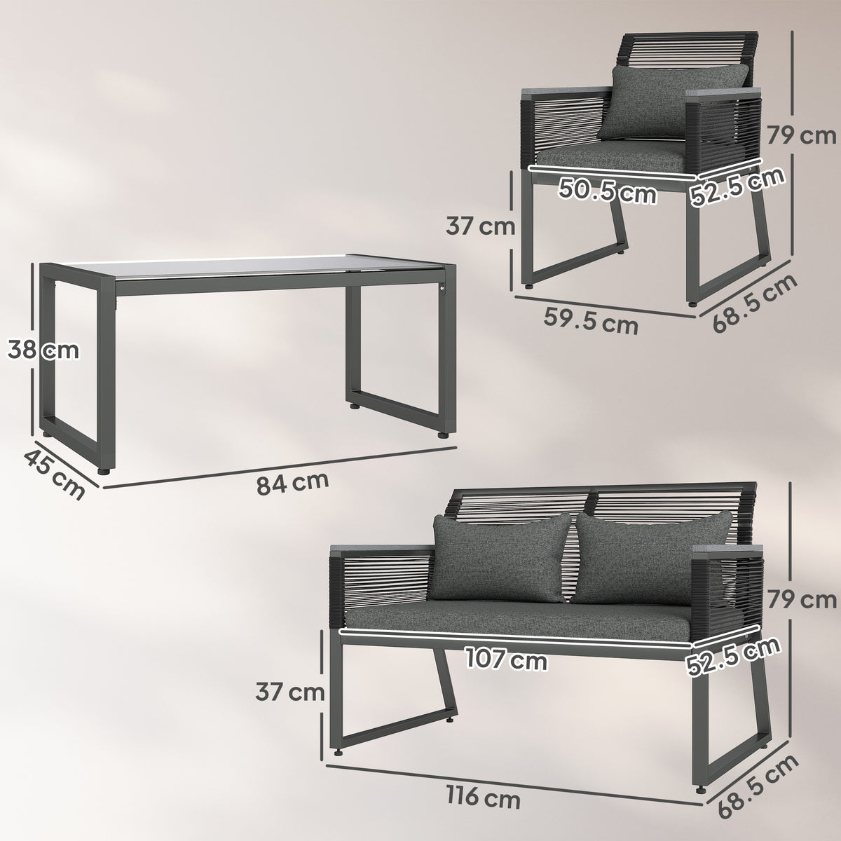 Outsunny 4 Pieces Rattan Garden Furniture Set - Charcoal Grey
