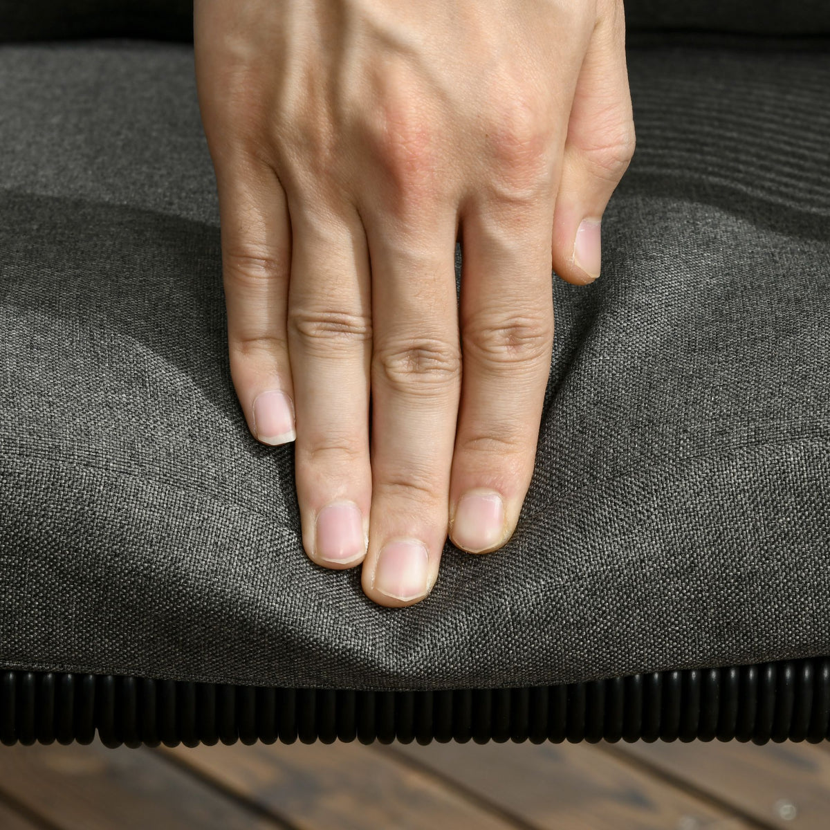 Outsunny 4 Seater Rattan Cube Garden Furniture Set, Rattan Dining Set with Cushions, Outdoor Dining Table and Chairs with Rectangular Wood Grain Plastic Top Table for Patio, Balcony, Black - Black