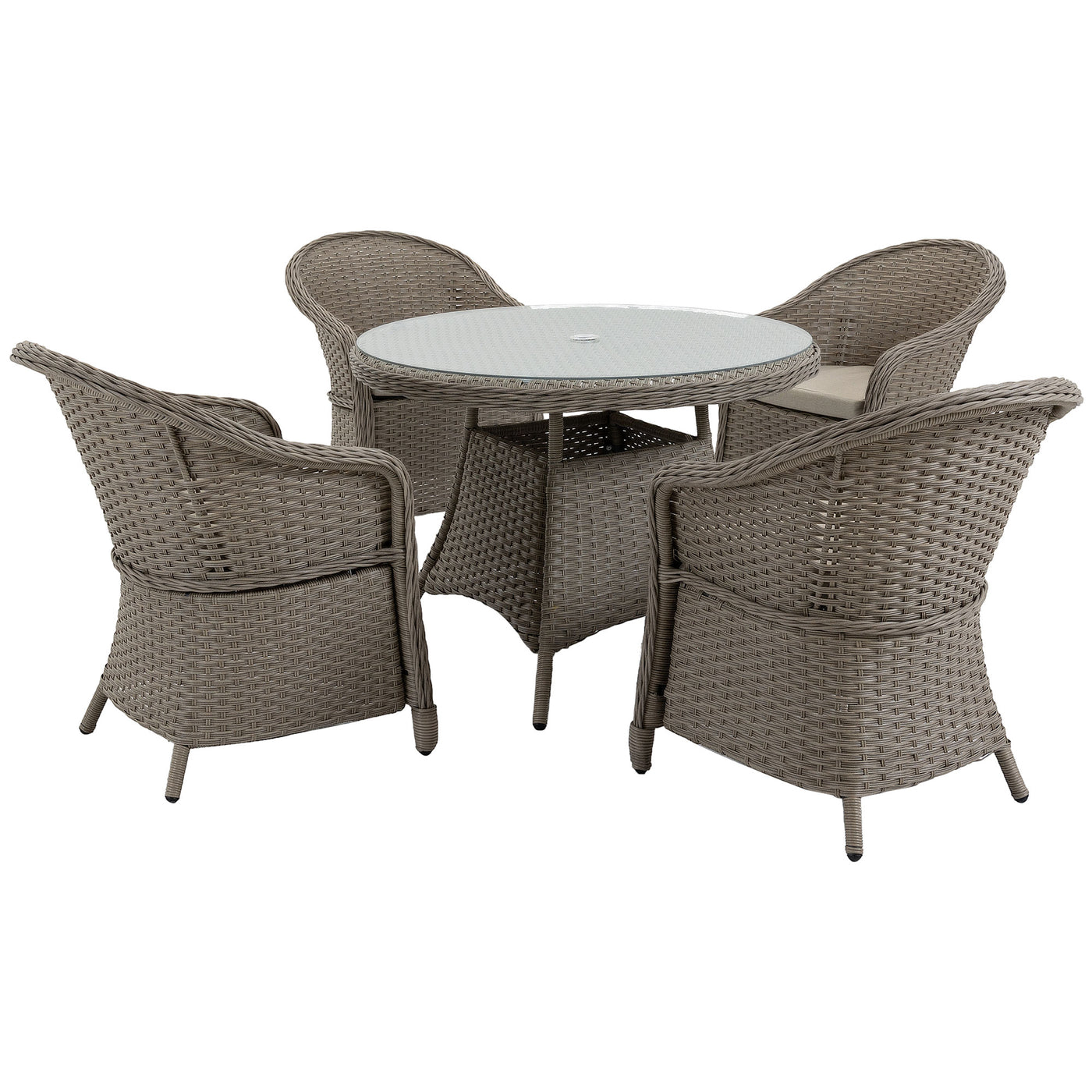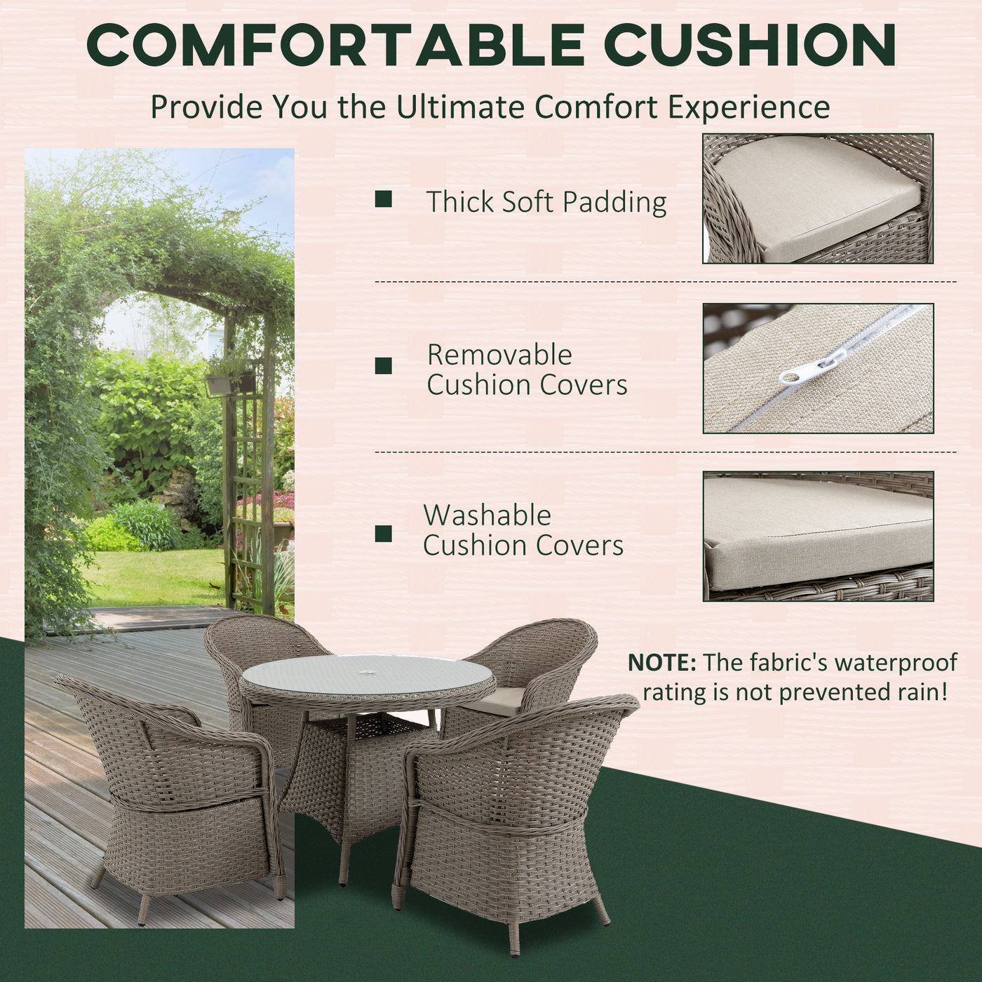 Outsunny 4 Seater Rattan Garden Furniture Set with Cushions, Round PE Rattan Dining Set with Glass-Top Table, Umbrella Hole, Outdoor Garden Table and Chairs, Mixed Grey - Mixed Grey