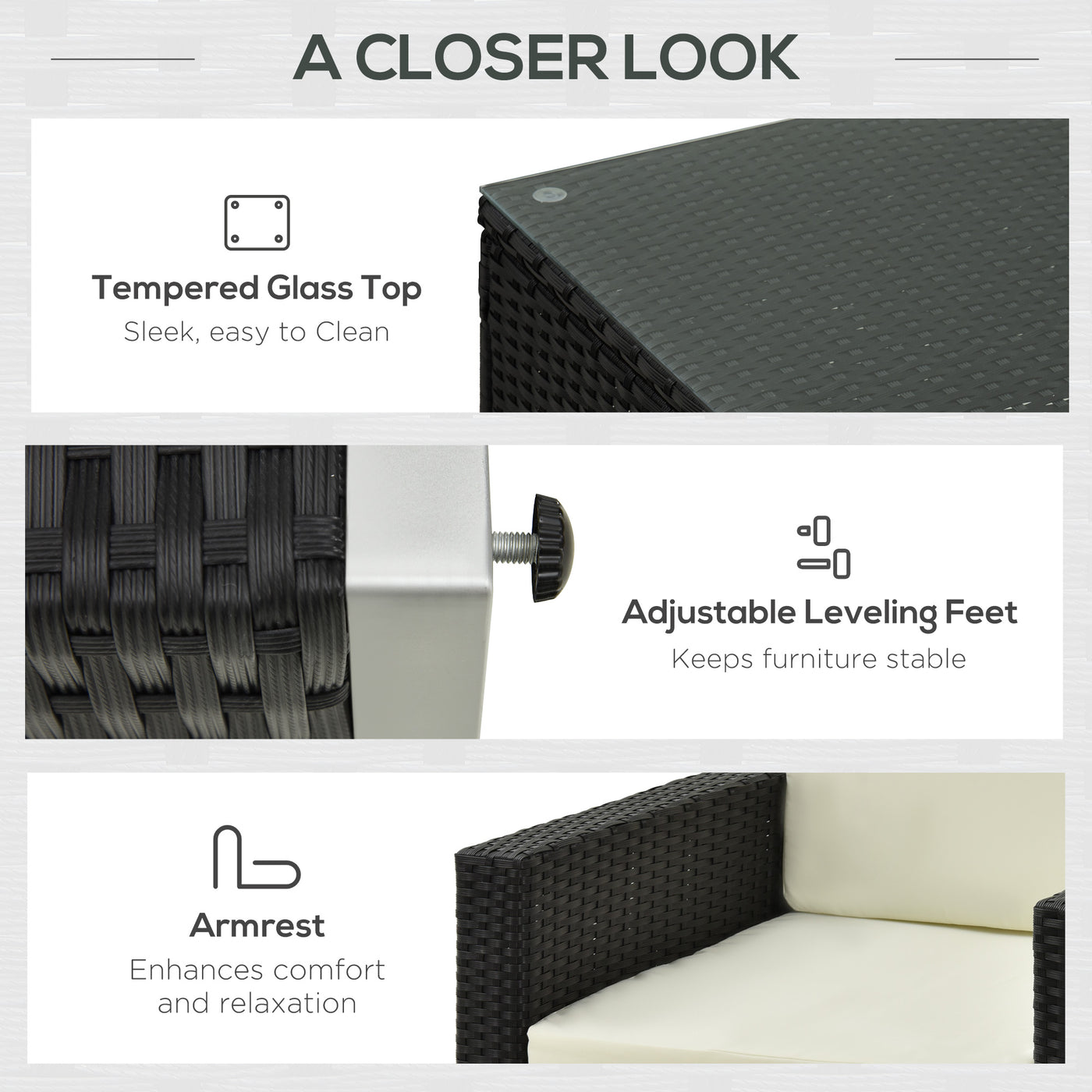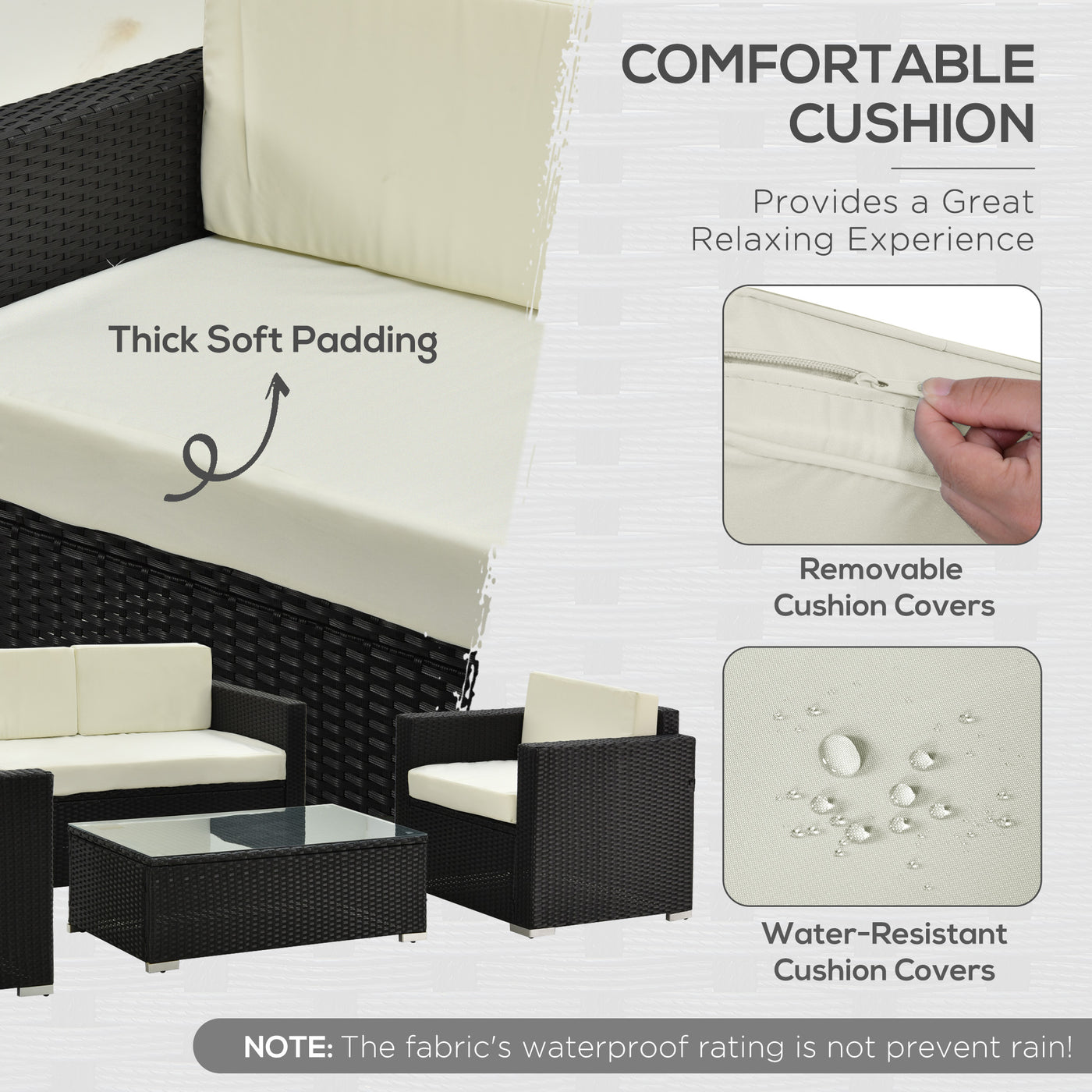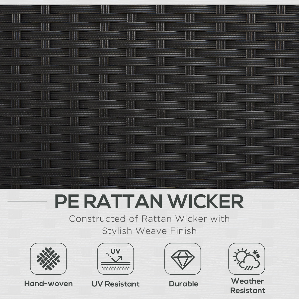 Outsunny 4-Seater Rattan Sofa Set Garden Rattan Furniture Wicker Steel Chair Seat Furniture Patio Rattan Garden Sofa Black - Black