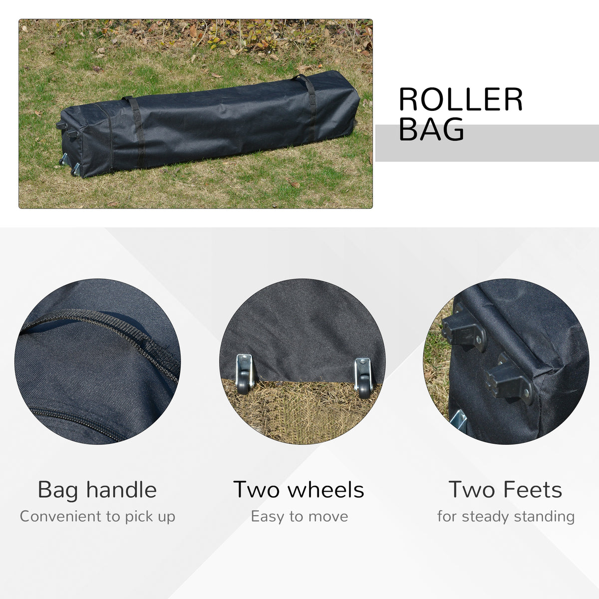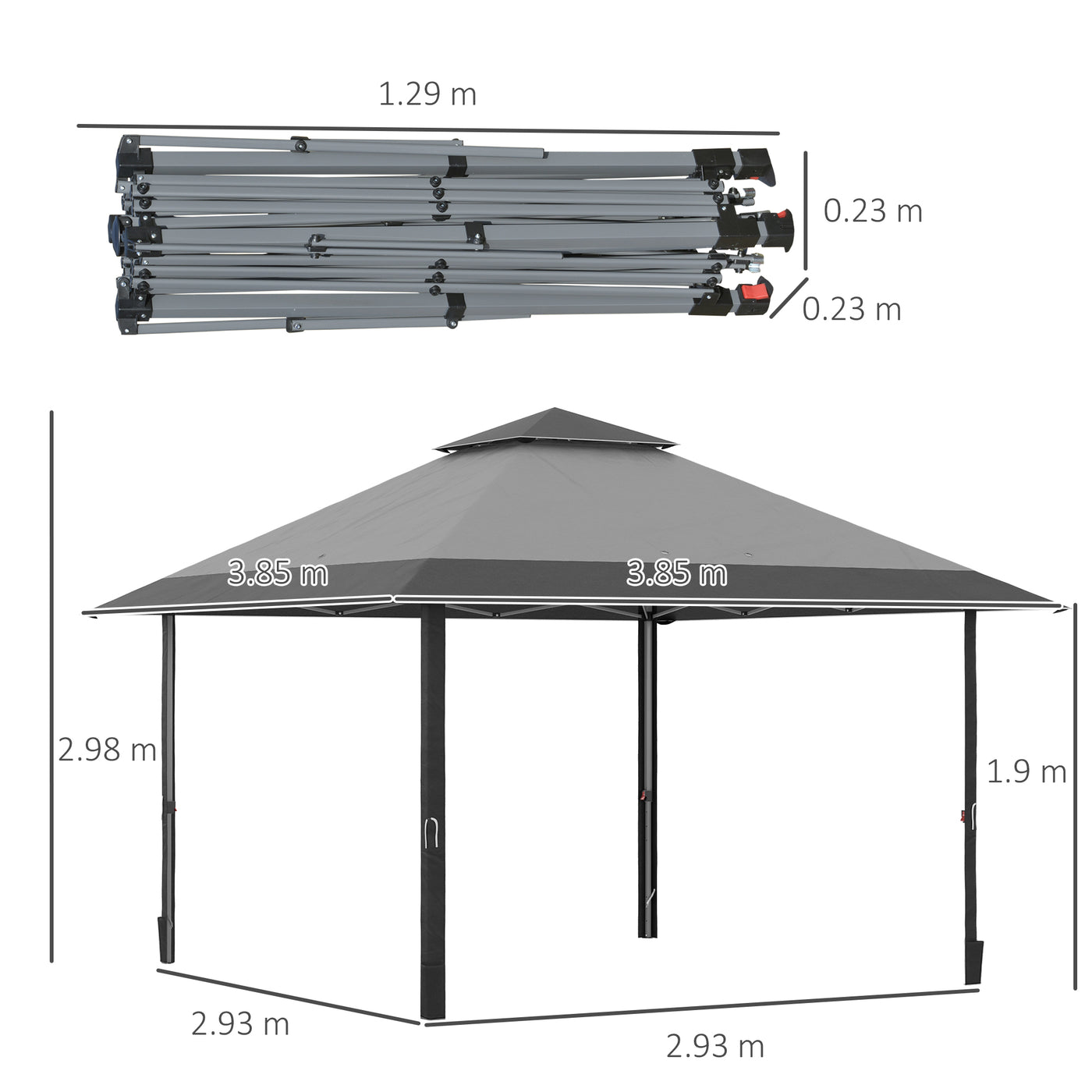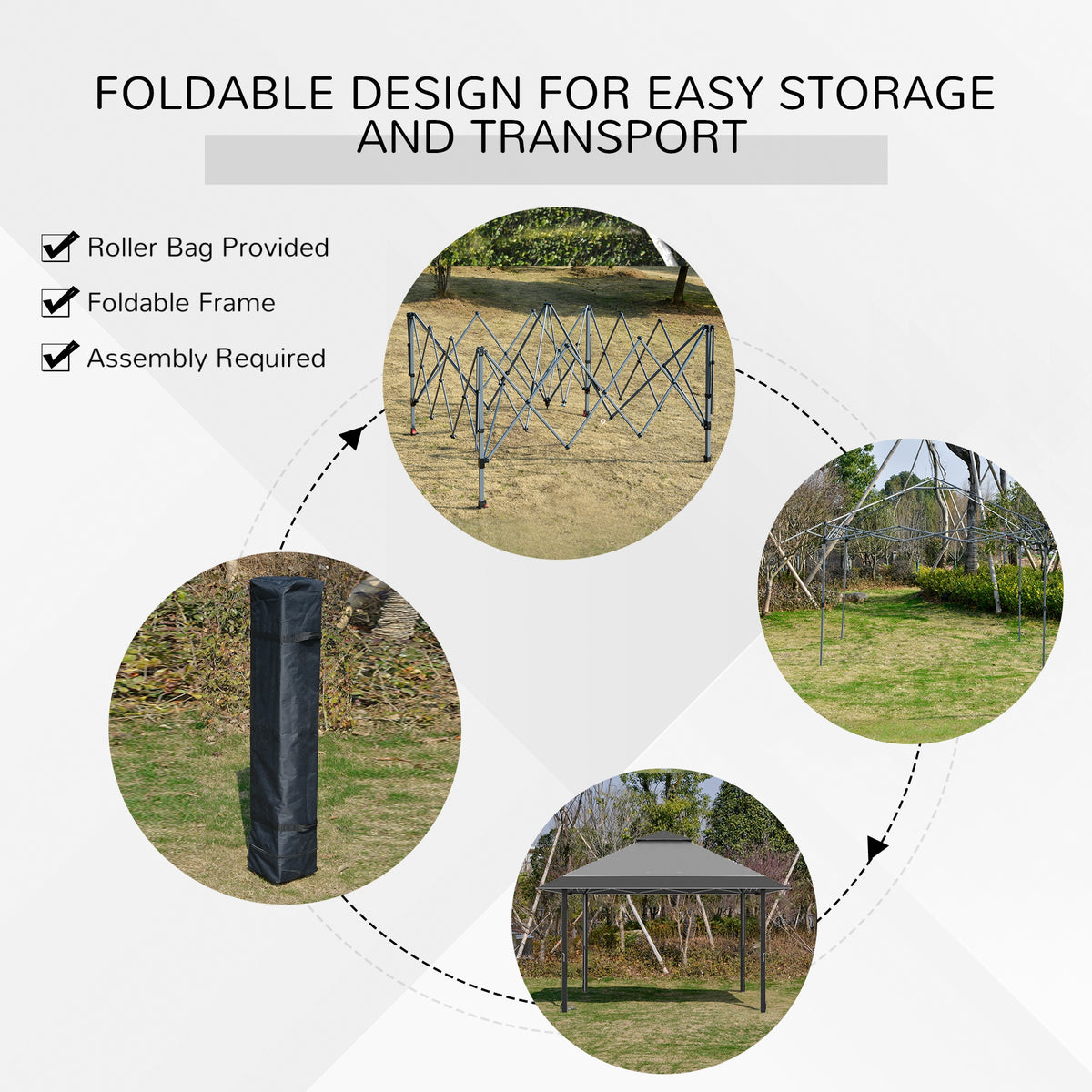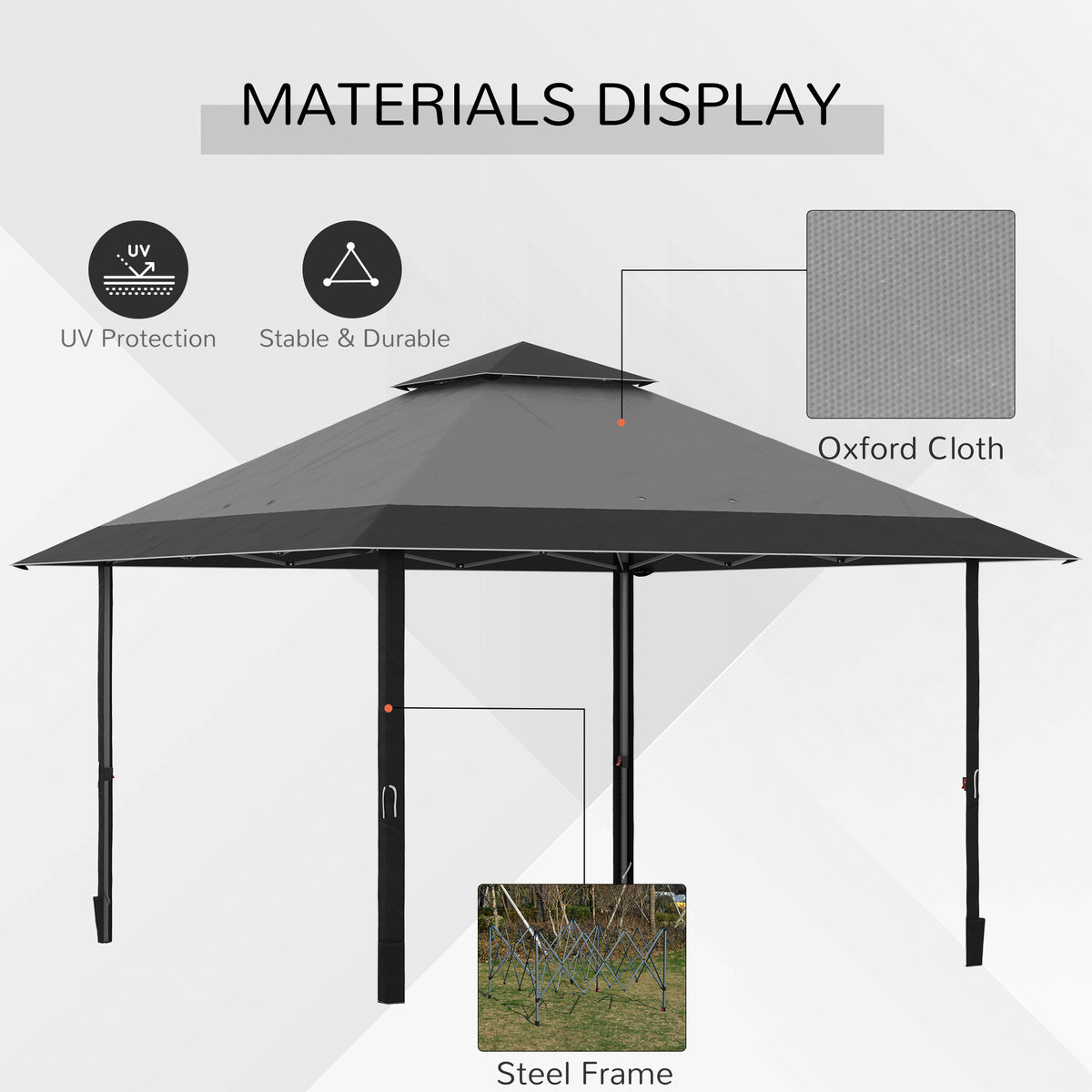 Outsunny 4 x 4m Pop-up Gazebo Double Roof Canopy Tent with UV Proof, Roller Bag & 3-Level Height Adjustable Outdoor Party, Steel Frame, Grey - Grey