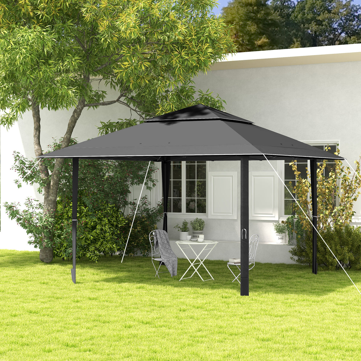 Outsunny 4 x 4m Pop-up Gazebo Double Roof Canopy Tent with UV Proof, Roller Bag & Adjustable Legs Outdoor Party, Steel Frame, Dark Grey - Dark Grey