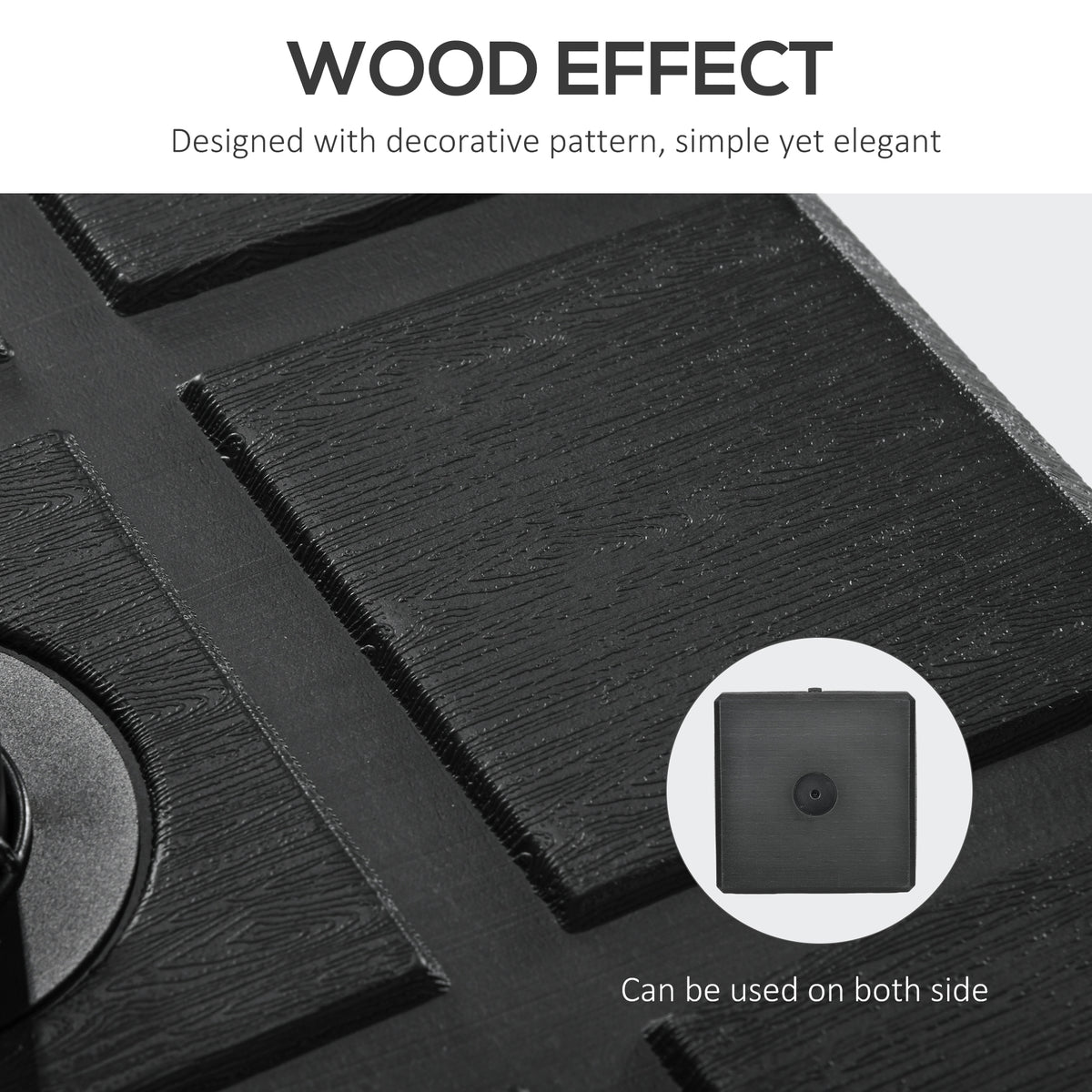 Outsunny 40kg Square Umbrella Parasol Base with Wood Effect, Plastic Umbrella Stand for Outdoor Patio Umbrella, Black - Black