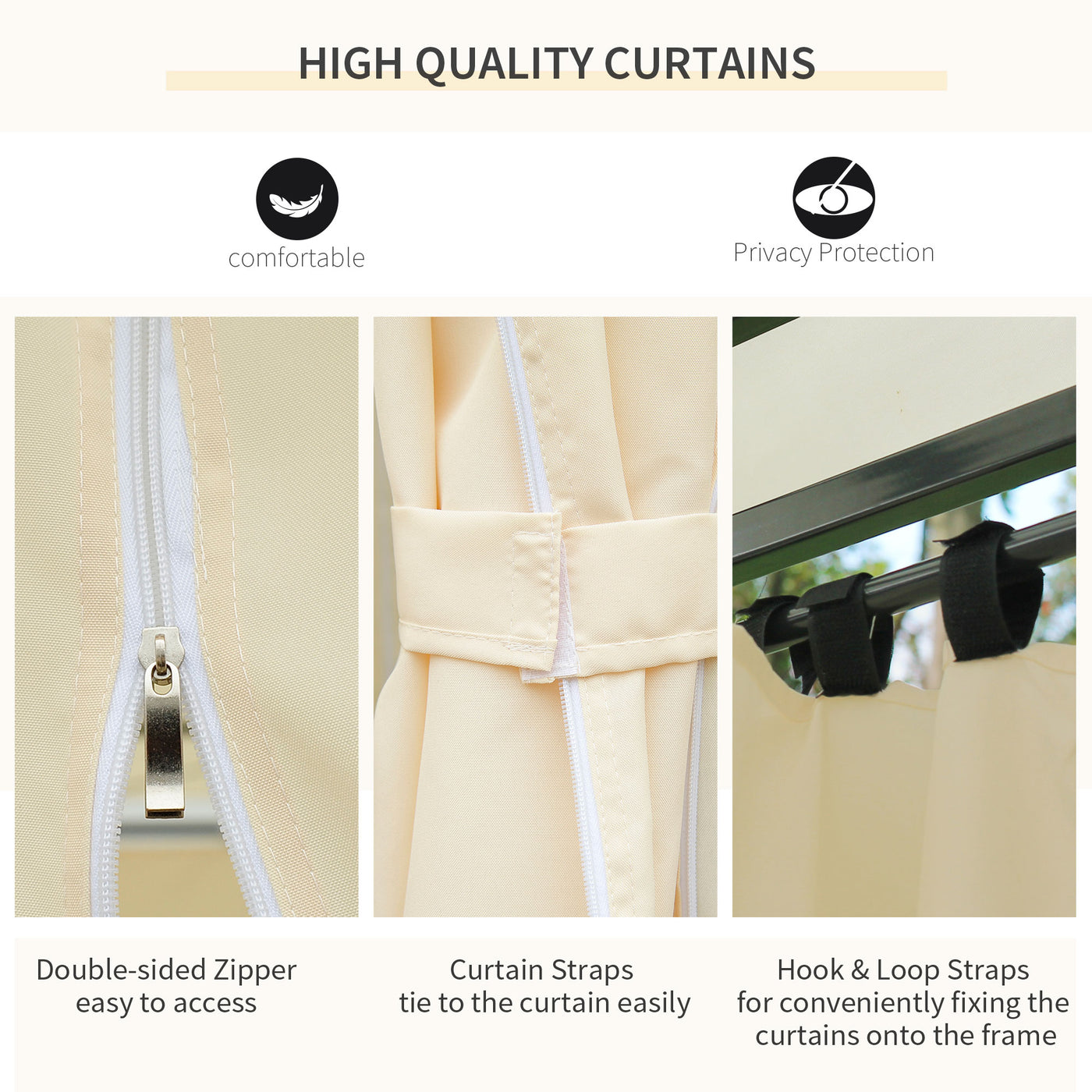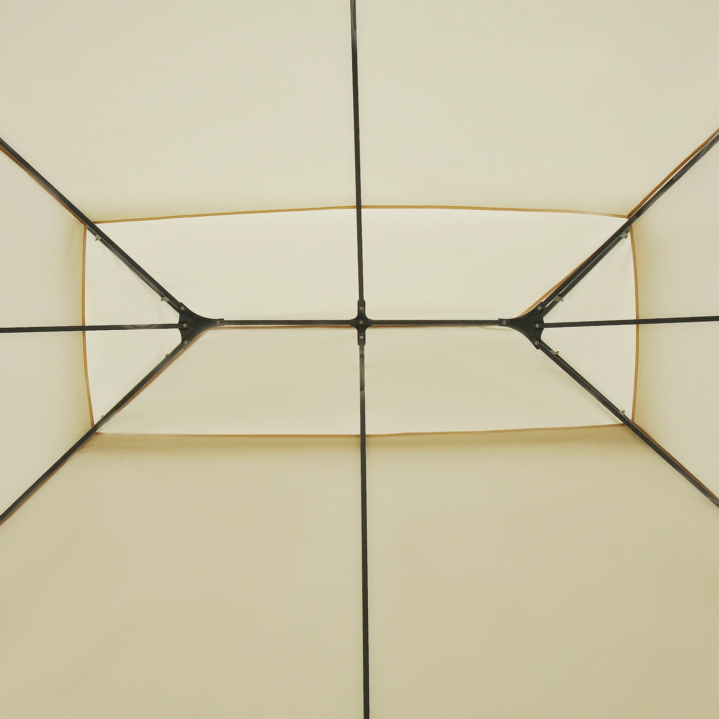 Outsunny 4m x 3(m)Garden Gazebo, Double Roof Outdoor Gazebo Canopy Shelter with Curtains, Solid Steel Frame for Lawn and Deck, Beige - Beige