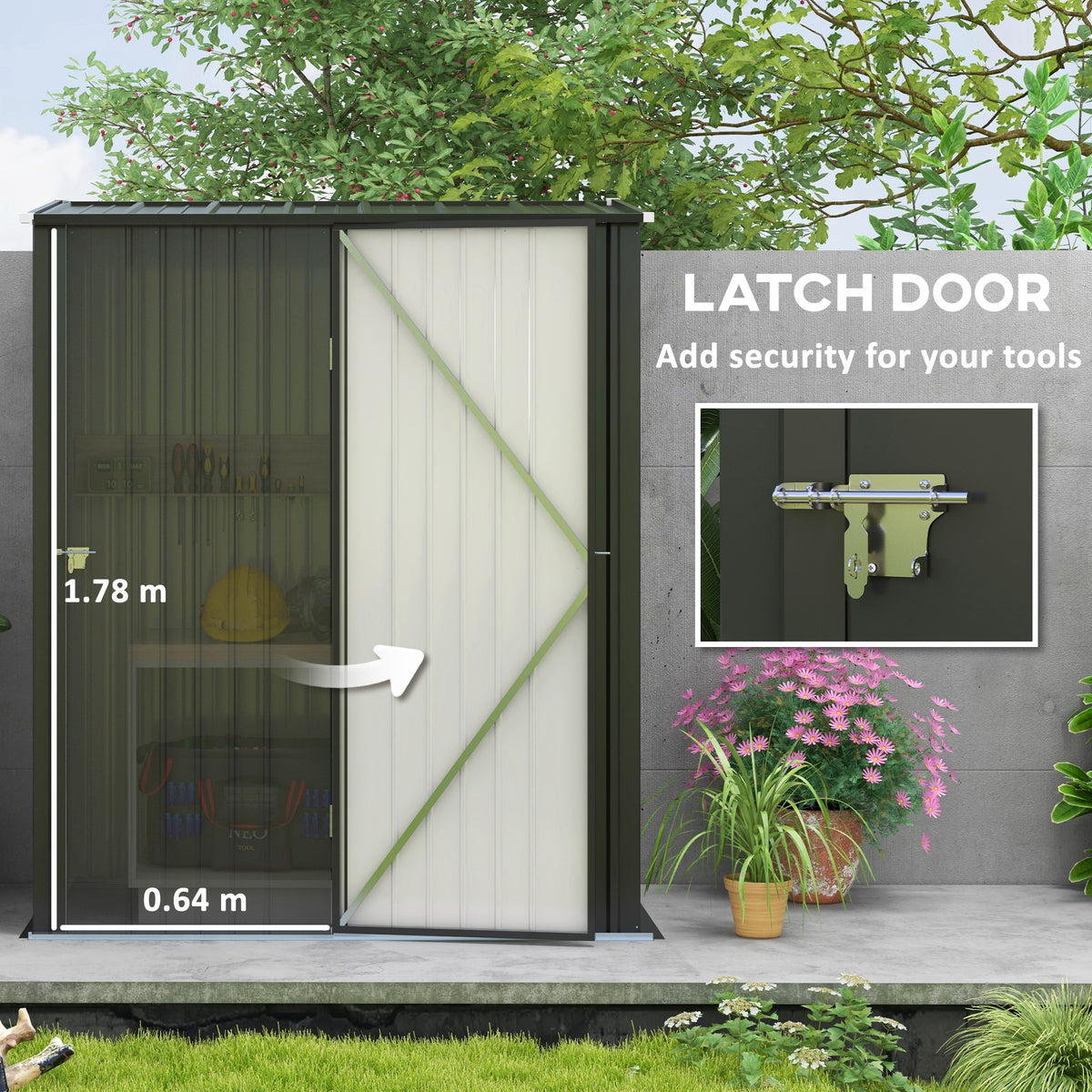 Outsunny 5.3 x 3.1ft Corrugated Steel Garden Shed - Black - Black