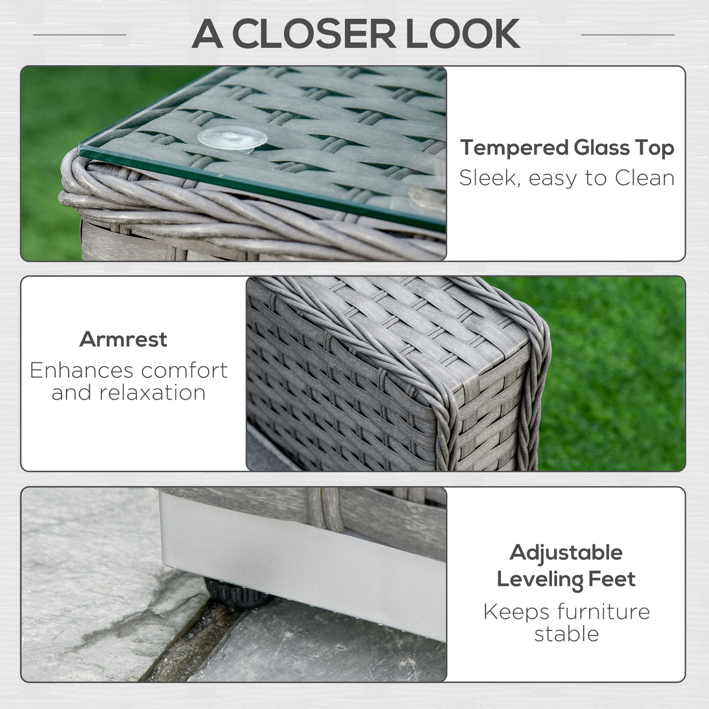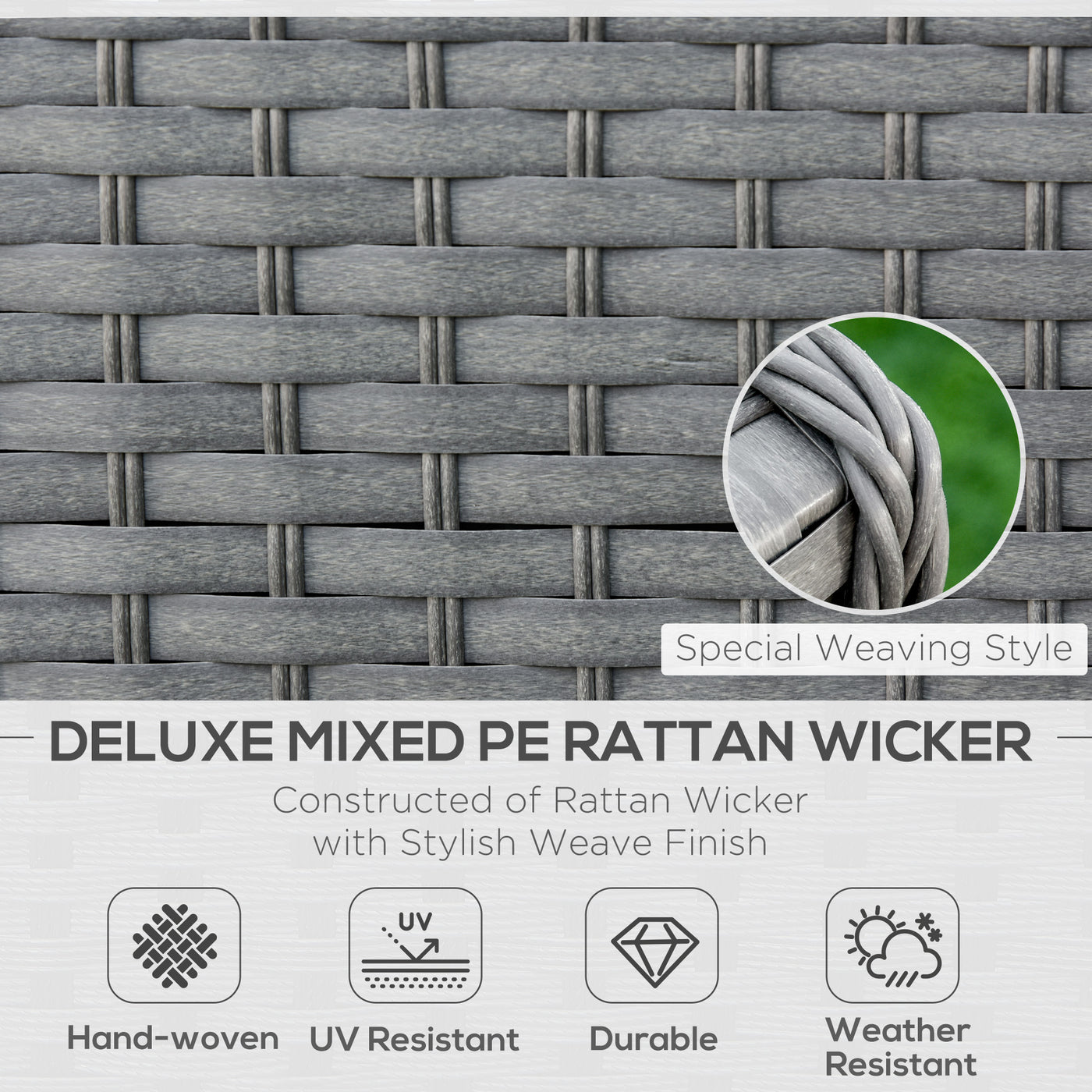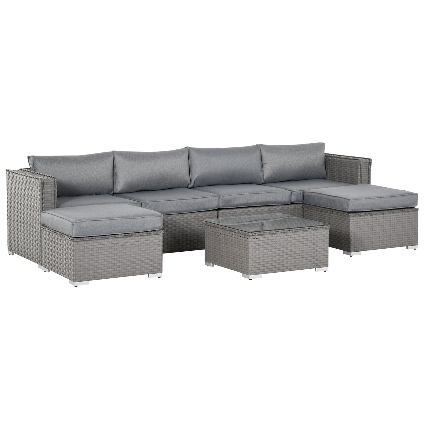 Outsunny 5 PCs PE Rattan Wicker Corner Sofa Set Bonzer Outdoor Conservatory Furniture Lawn Patio Tea Table Footstool w/ Cushion - Grey - Grey