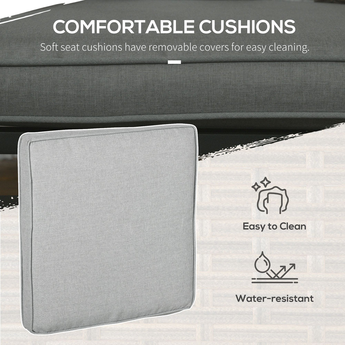 Outsunny 5 Piece PE Rattan Garden Furniture Set, 2 Armchairs,2 Stools, Steel Tabletop with Wicker Shelf, Padded Outdoor Seating, Grey - Grey