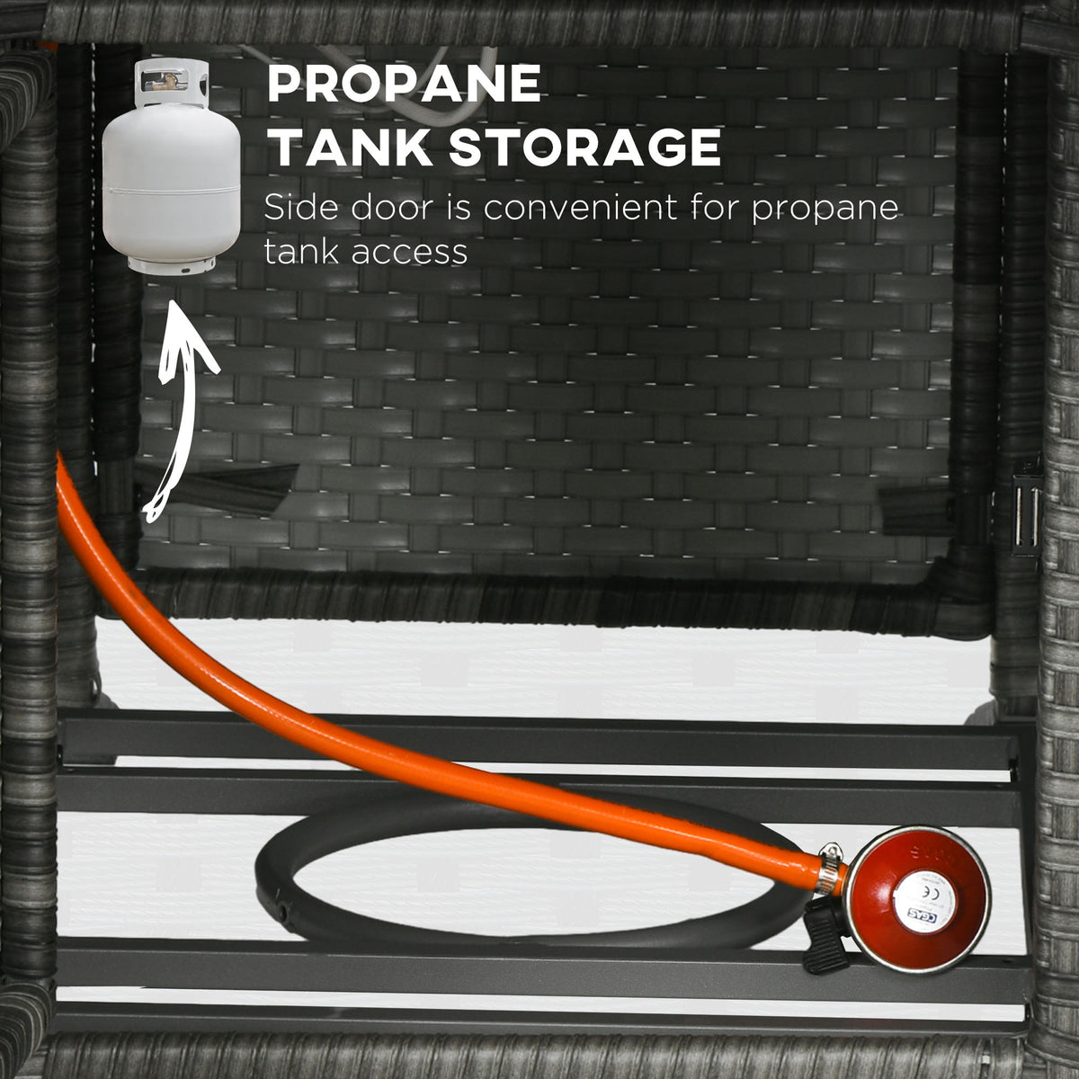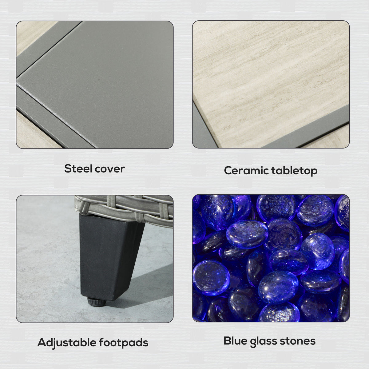 Outsunny 5-Piece Rattan Patio Furniture Set with Gas Fire Pit Table, Loveseat Sofa, Armchairs, Cushions, Pillows, Grey - Grey