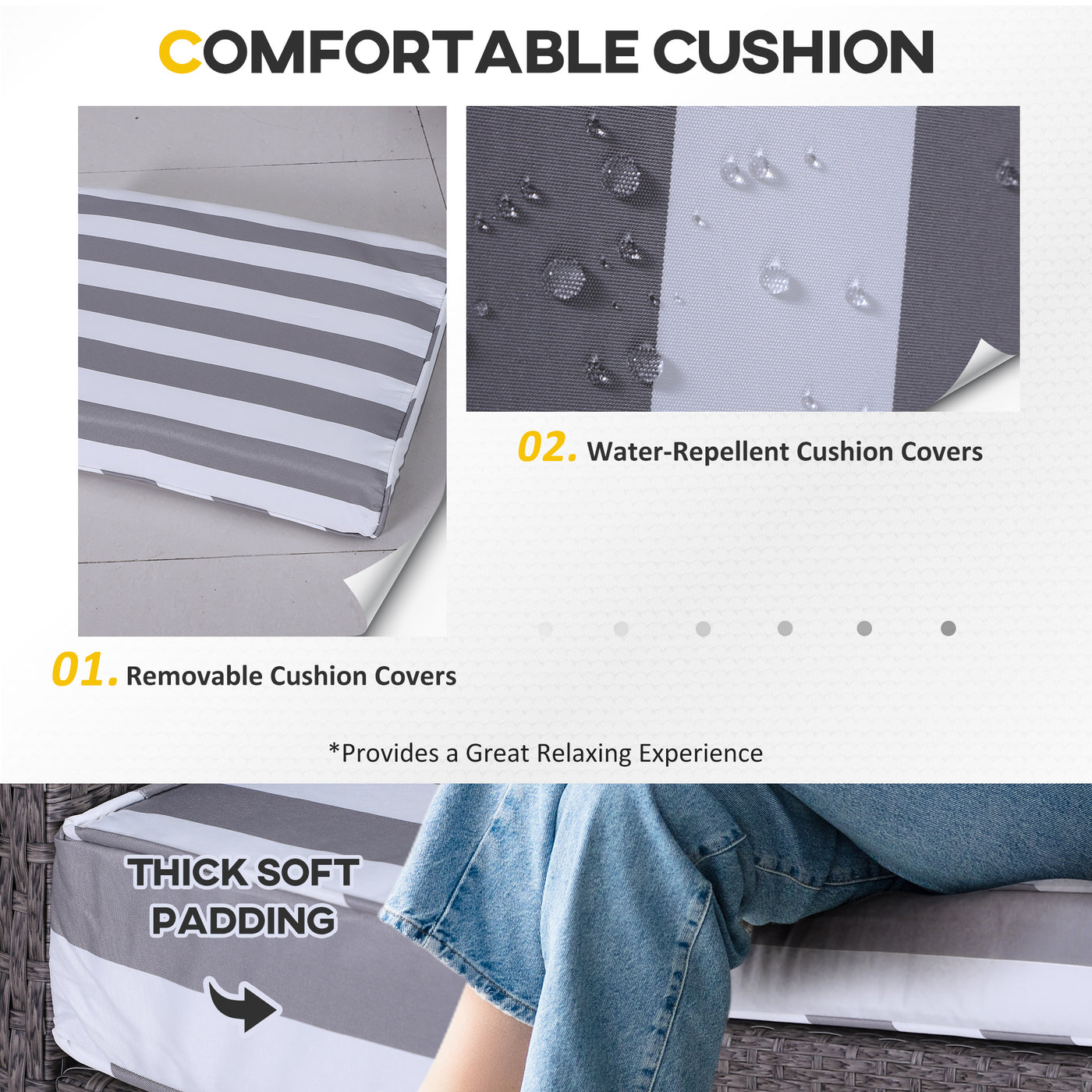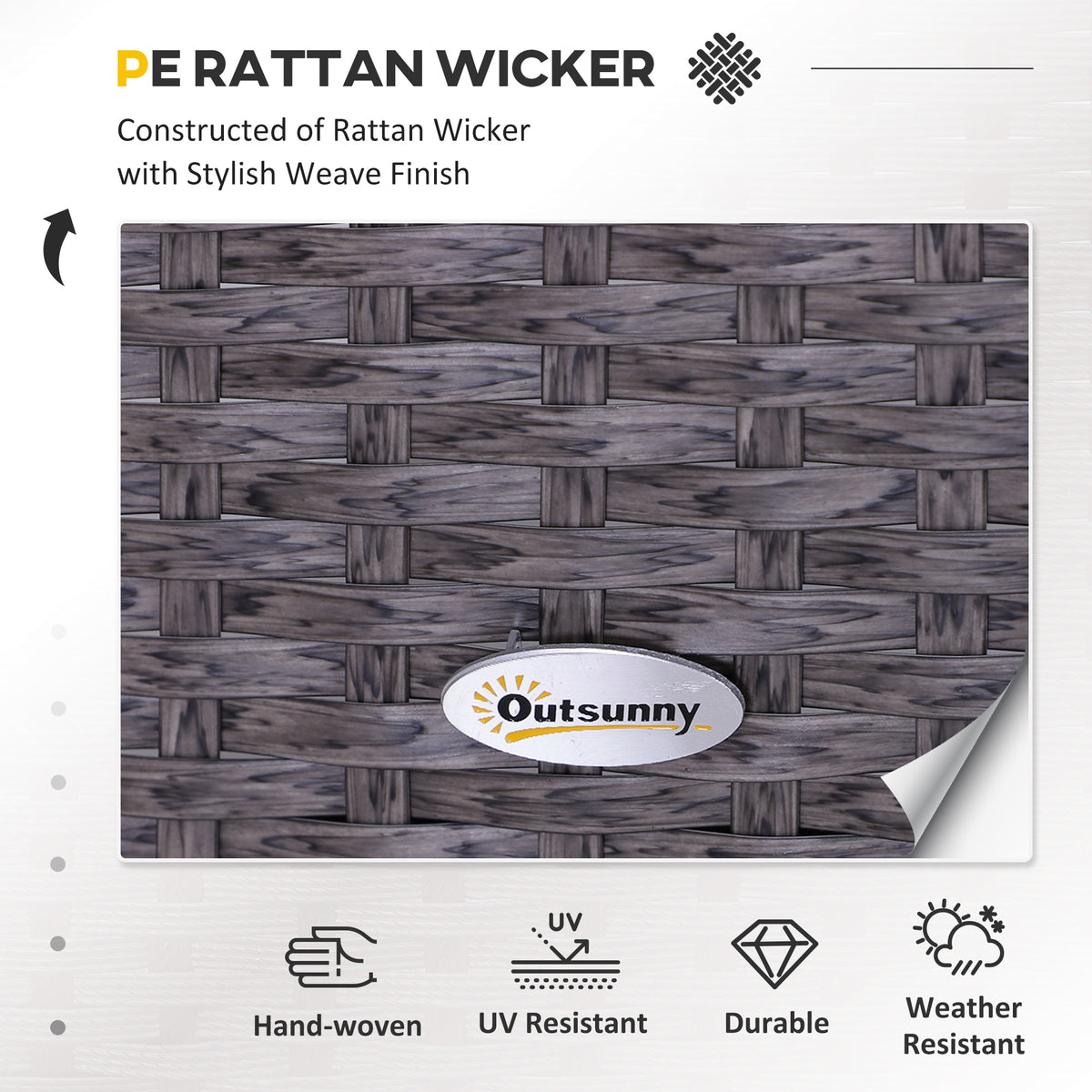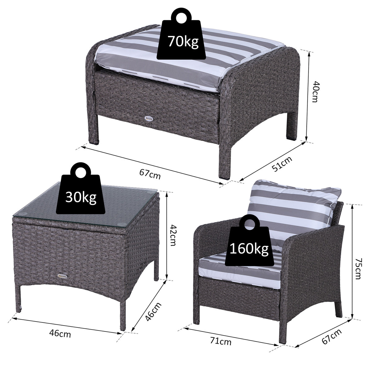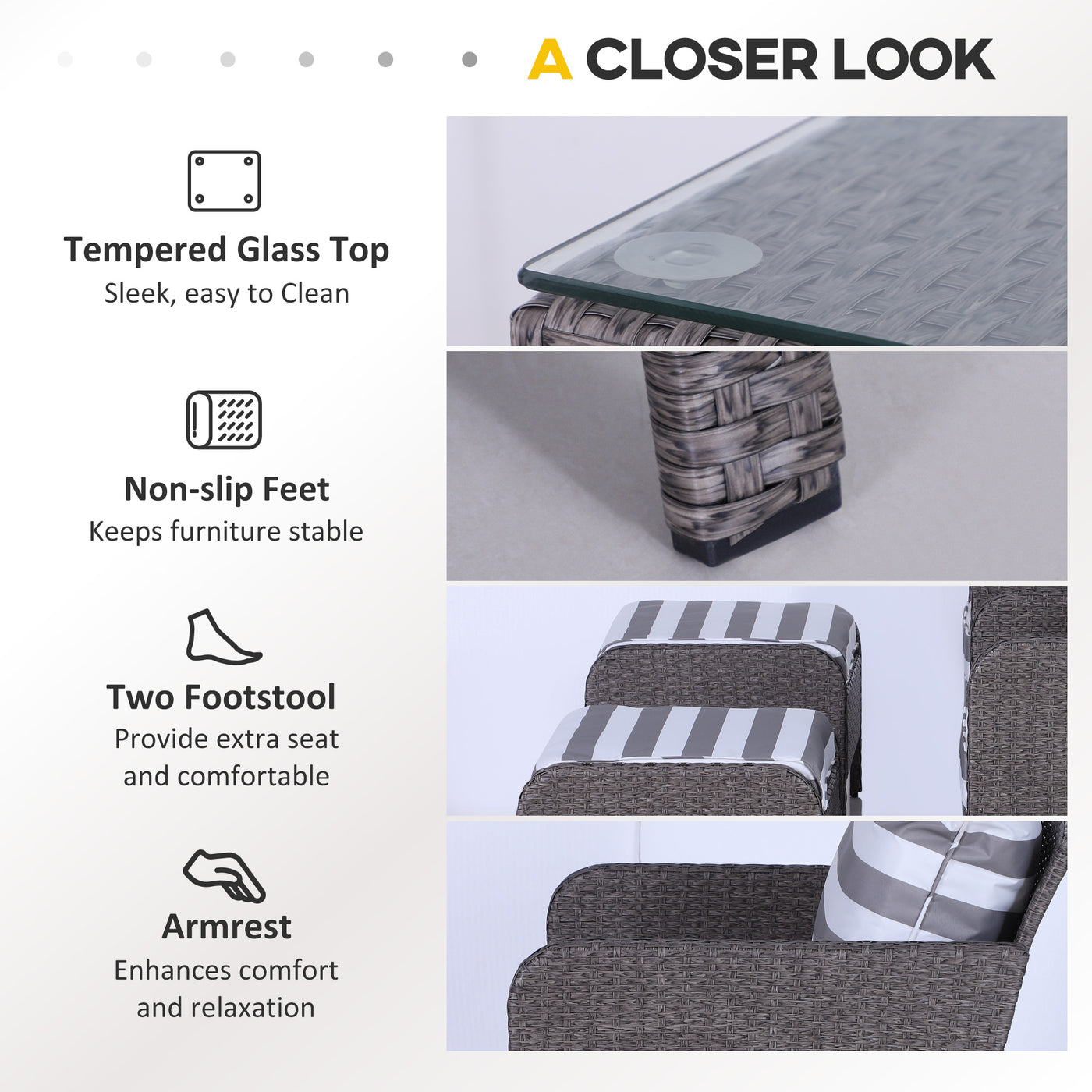 Outsunny 5 Pieces PE Rattan Garden Furniture Set with 10cm Thick Padded Cushions, Wicker Weave Outdoor Seating Chairs with 2 Armchairs, 2 Stools, Glass Top Table, Dark Grey - Dark Grey
