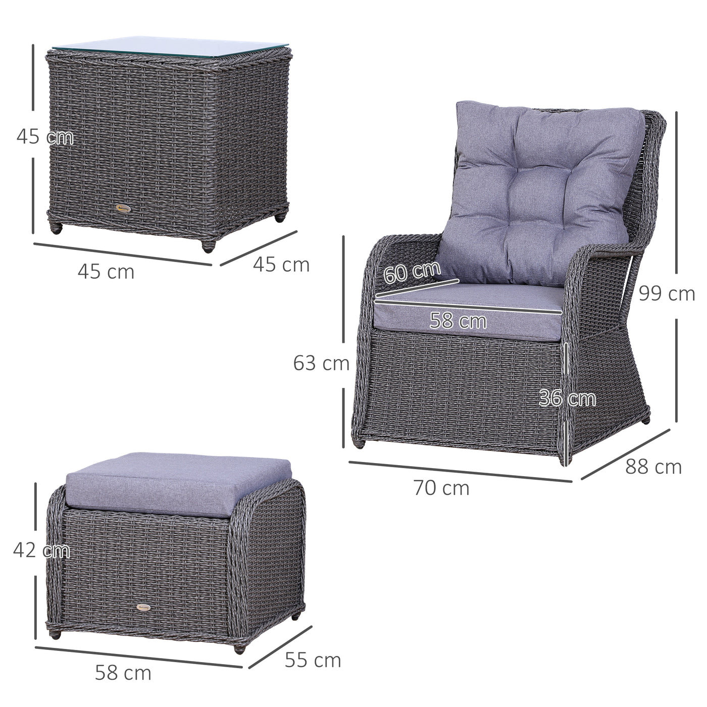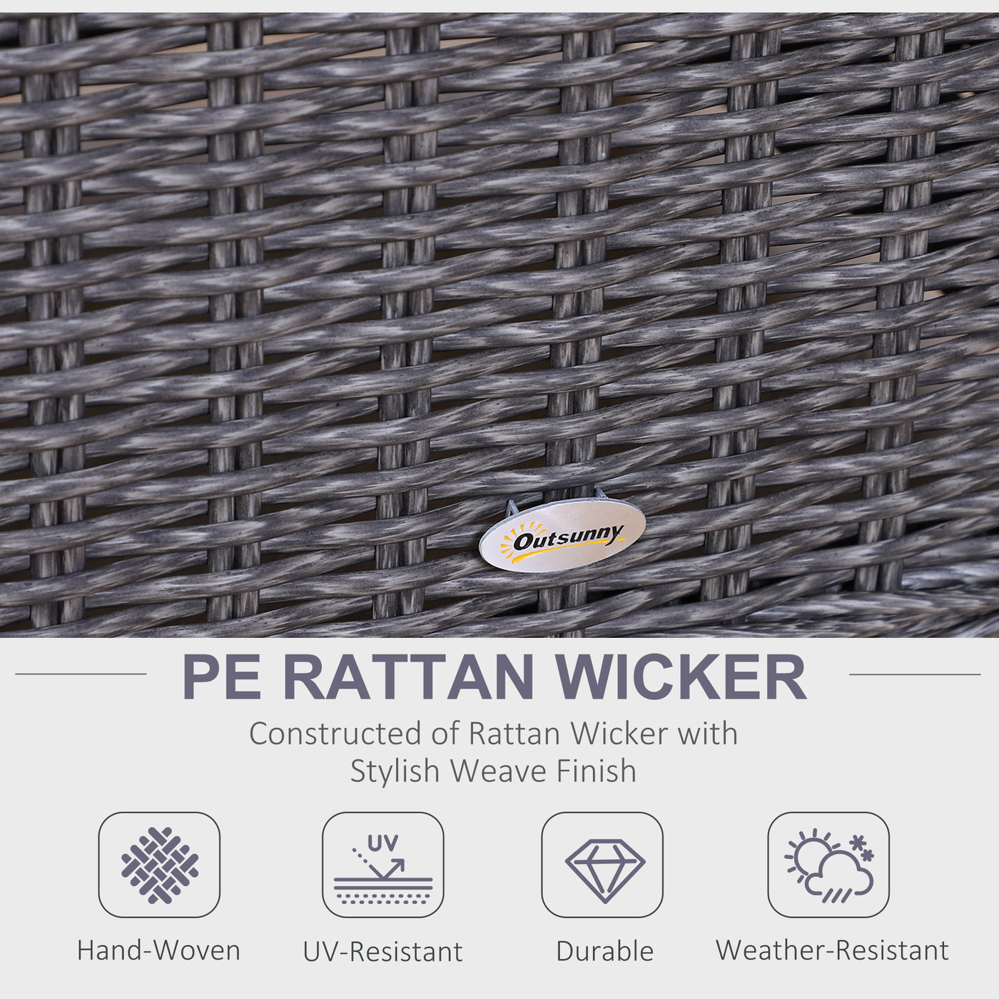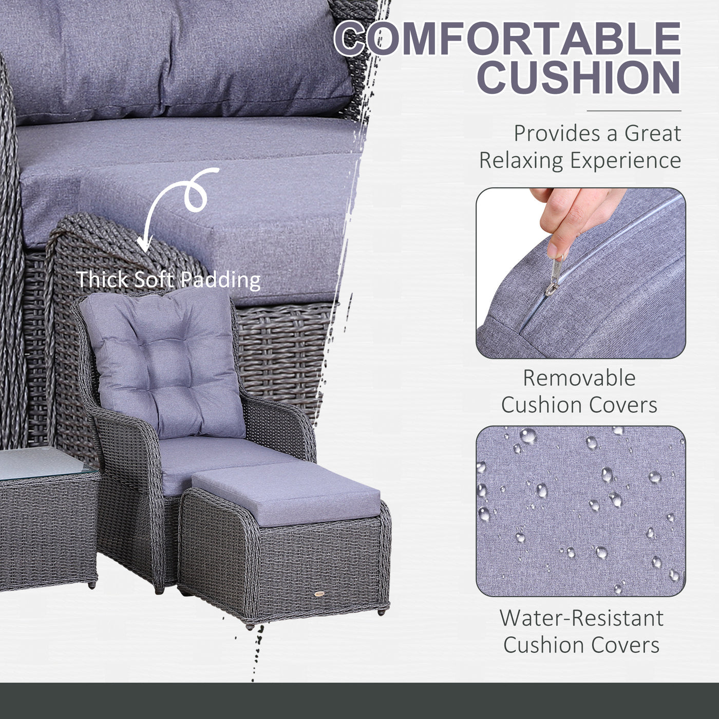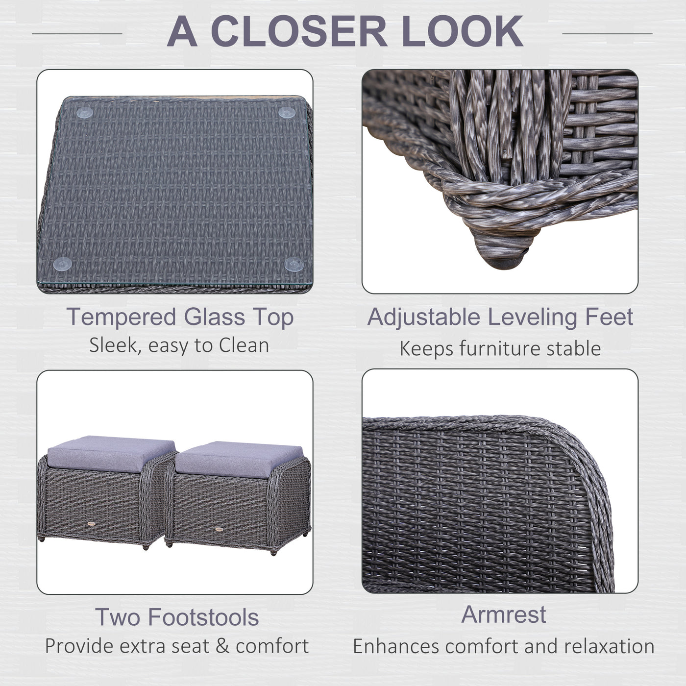 Outsunny 5PCS Deluxe Garden Rattan Furniture Sofa Chair & Stool Table Set Patio Wicker Weave Furniture Set Aluminium Frame Fully-assembly - Grey - Grey
