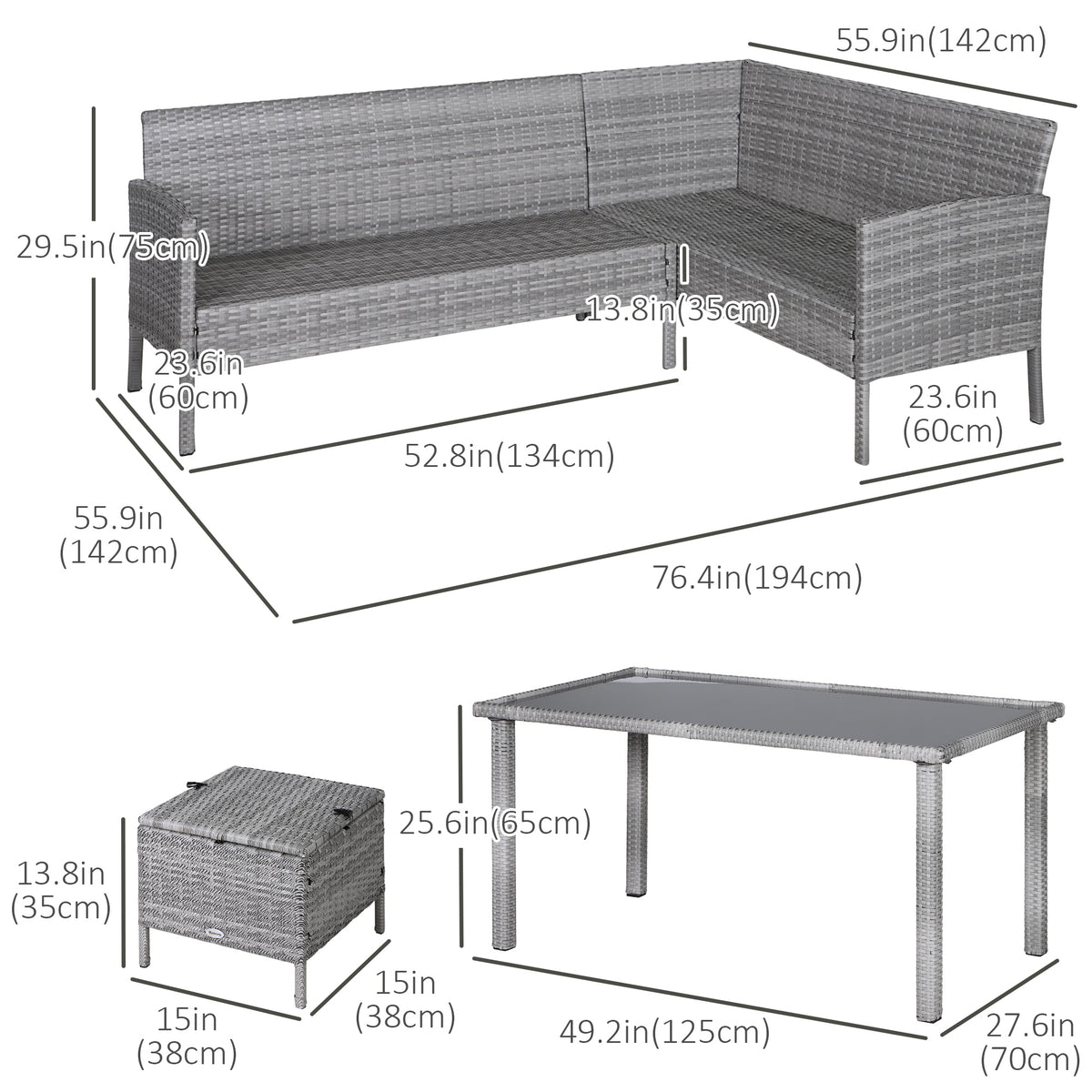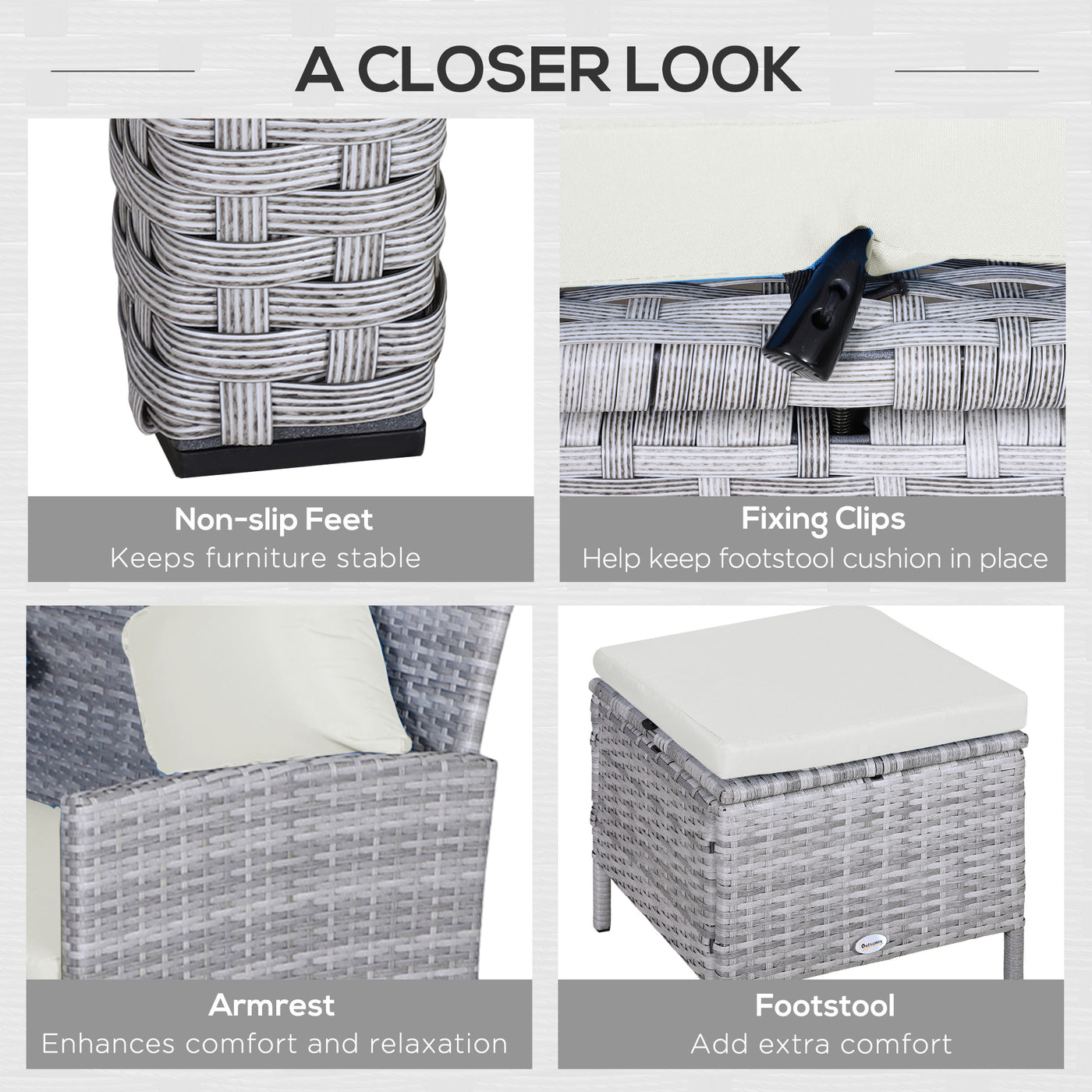 Outsunny 6-Seater Rattan Dining Set Sofa Table Footstool Outdoor w/ Cushion Garden Furniture