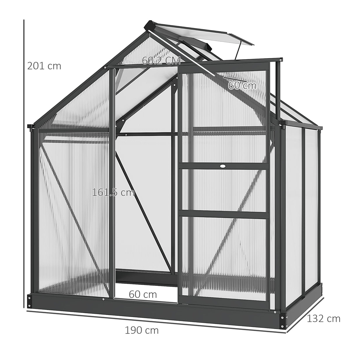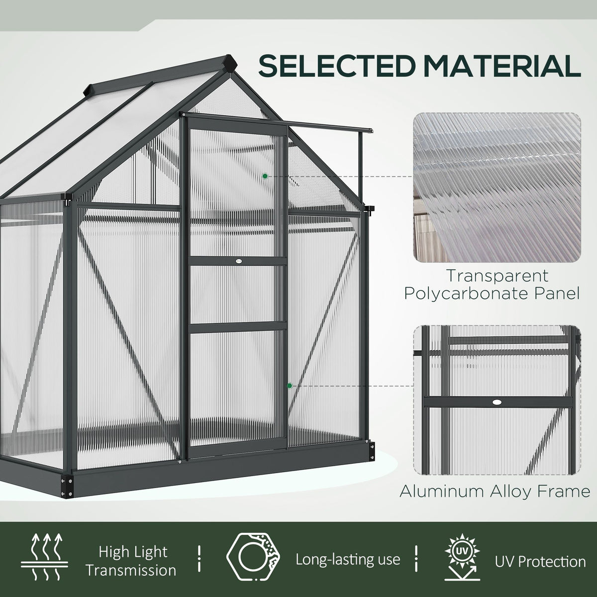 Outsunny 6 x 4ft Polycarbonate Greenhouse, Large Walk-In Green House with Slide Door and Window, Garden Plants Grow House with Aluminium Frame and Foundation, Grey - Grey