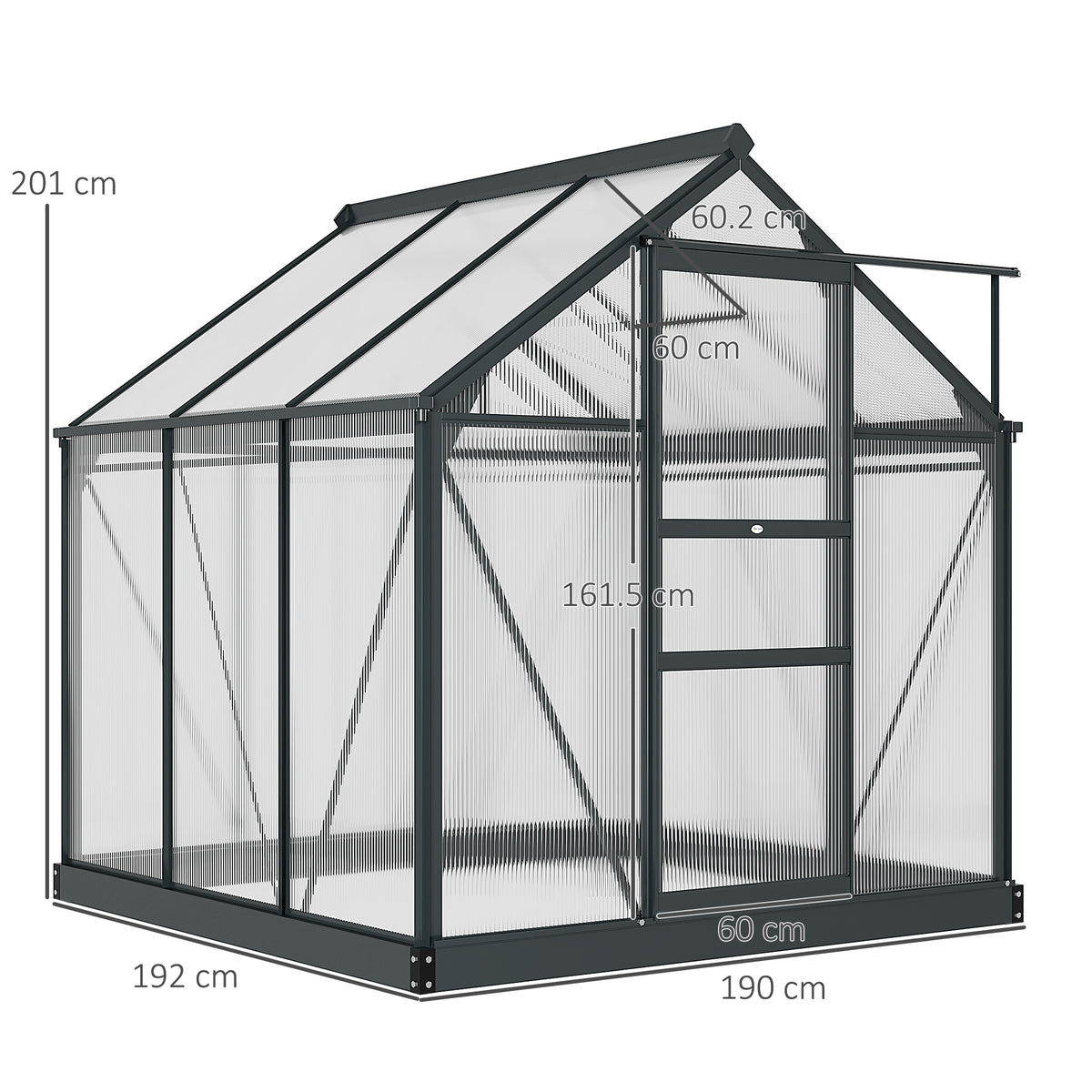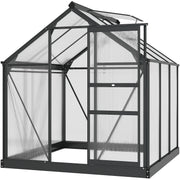 Outsunny 6 x 6ft Polycarbonate Greenhouse, Large Walk-In Green House with Slide Door and Window, Garden Plants Grow House with Aluminium Frame and Foundation, Grey - Grey