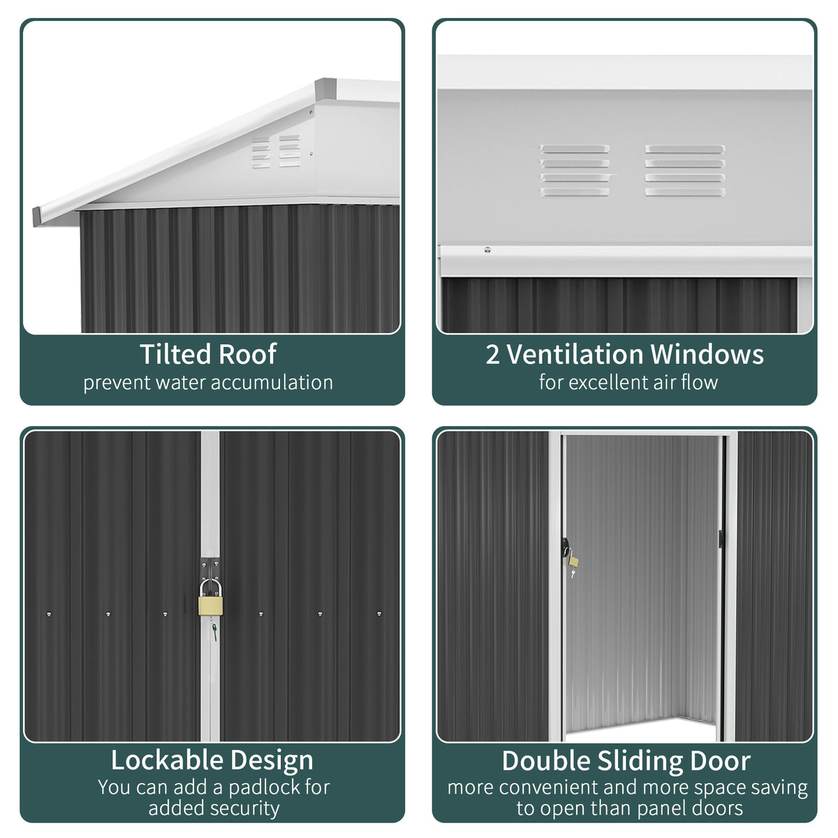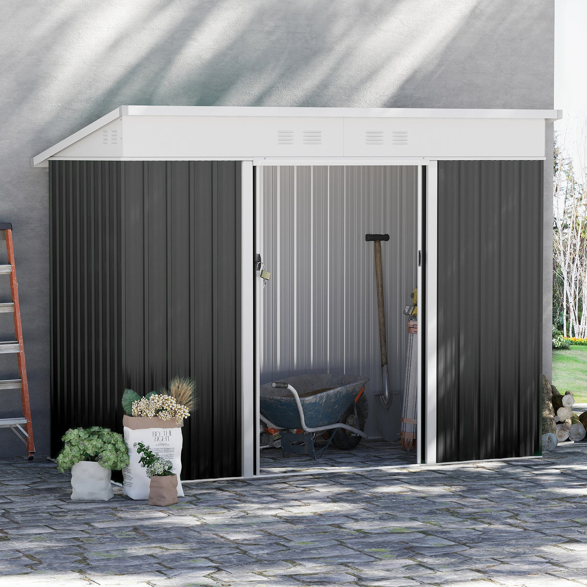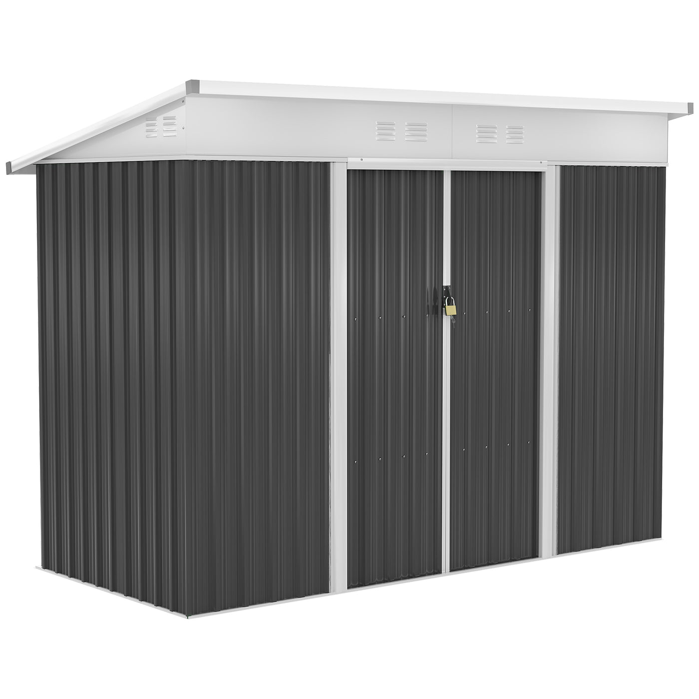 Outsunny 7.6 x 4.3ft Garden Storage Shed with Lockable Sliding Doors and Ventilation, Metal Garden Tool Storage House, Dark Grey - Dark Grey