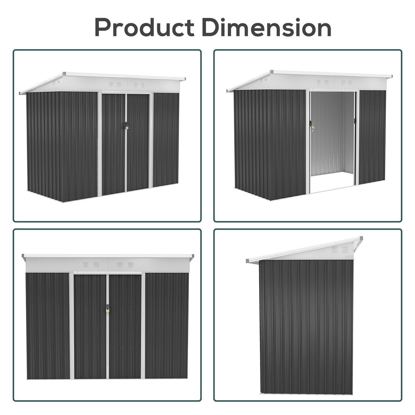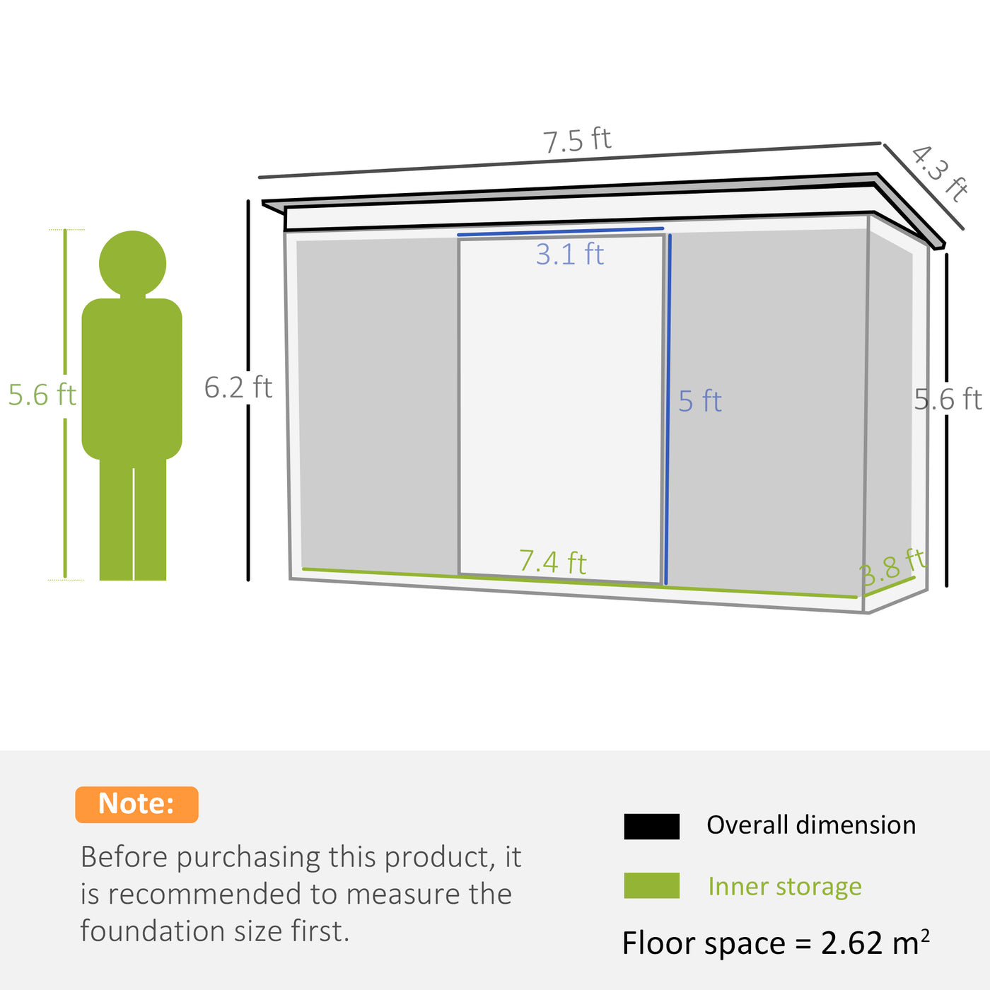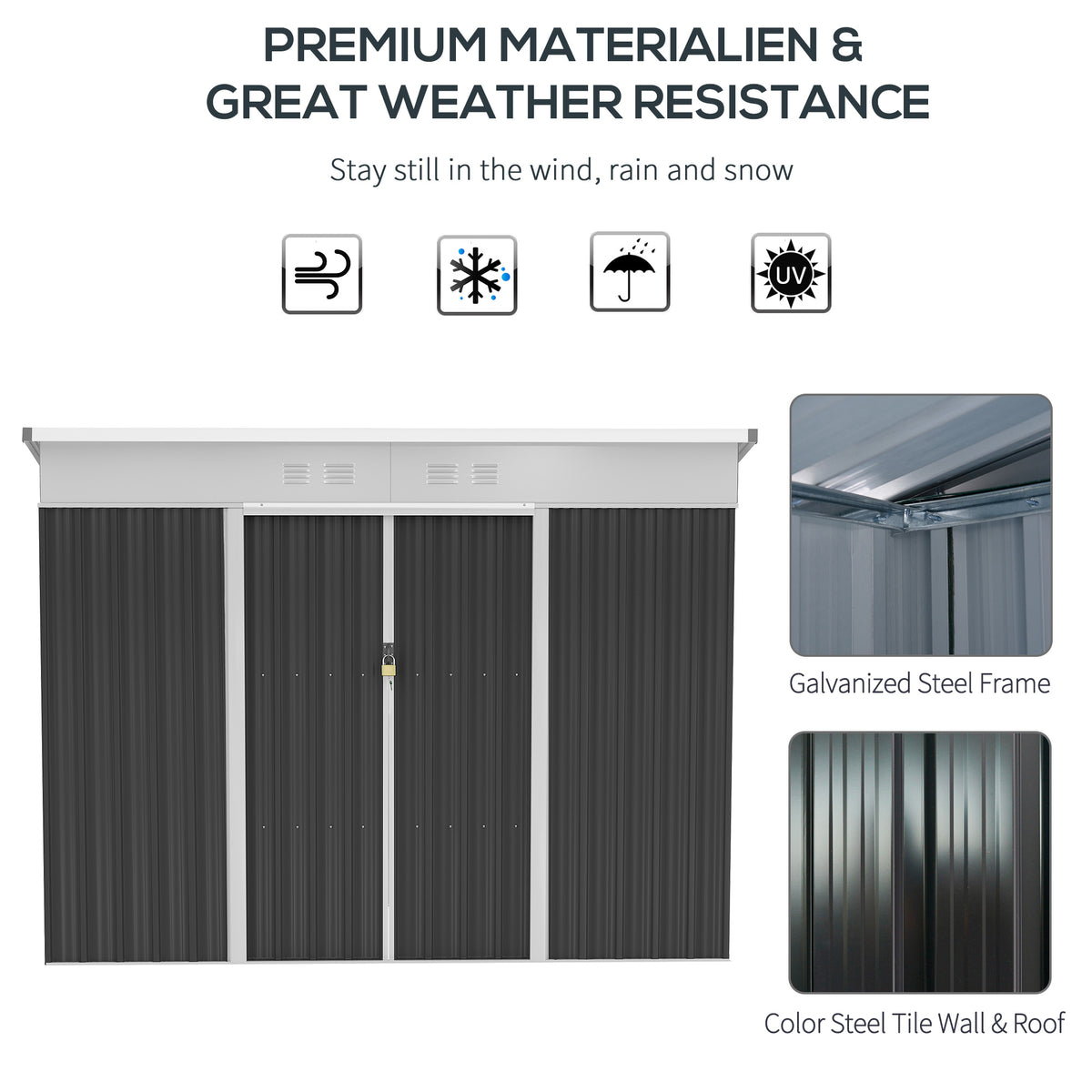Outsunny 7.6 x 4.3ft Garden Storage Shed with Lockable Sliding Doors and Ventilation, Metal Garden Tool Storage House, Dark Grey - Dark Grey