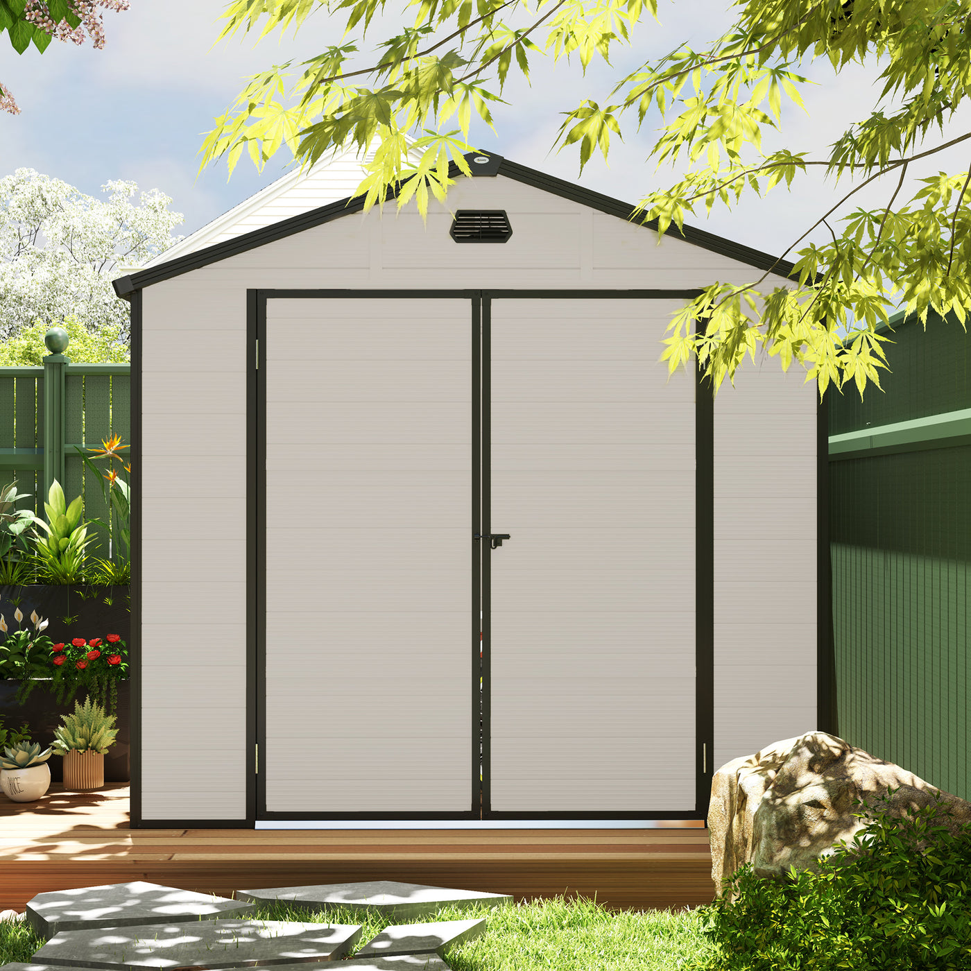 Outsunny 7.9ft x 6.2ft Aluminium Frame and Plastic Wall Shed, with Foundation - Cream White - Cream