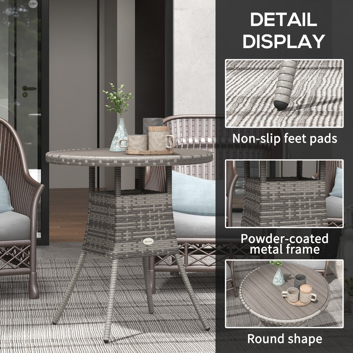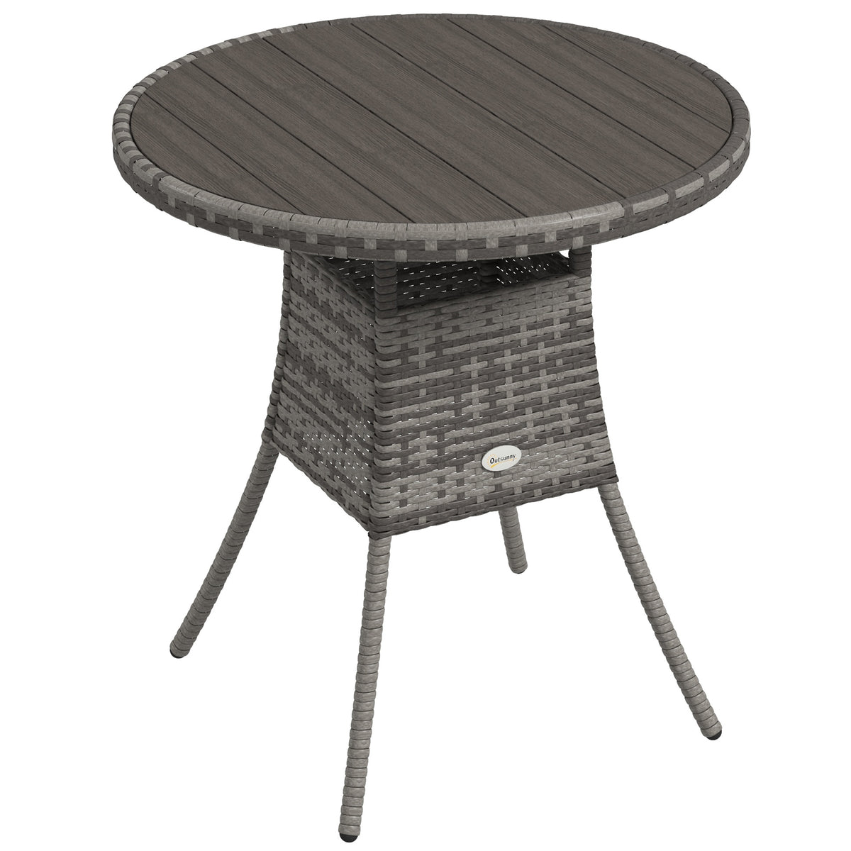 Outsunny 70cm Four-Person Wood-Effect Rattan Table - Grey - Grey